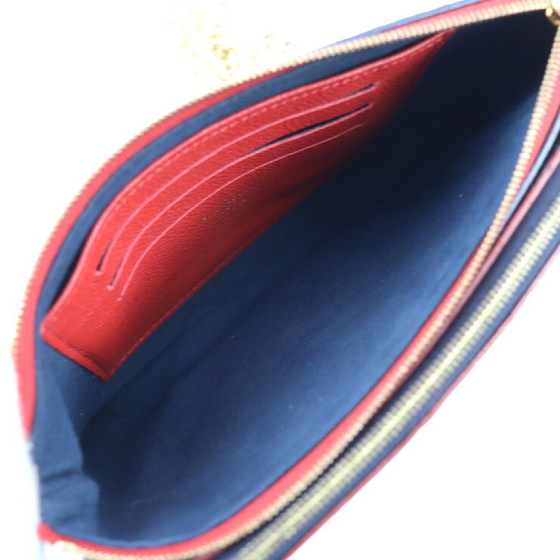 Louis Vuitton Pochette Double Zip Shoulder Bag M63916 Monogram Empreinte Marine Rouge Gold Hardware 2WAY Clutch Chain