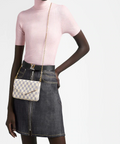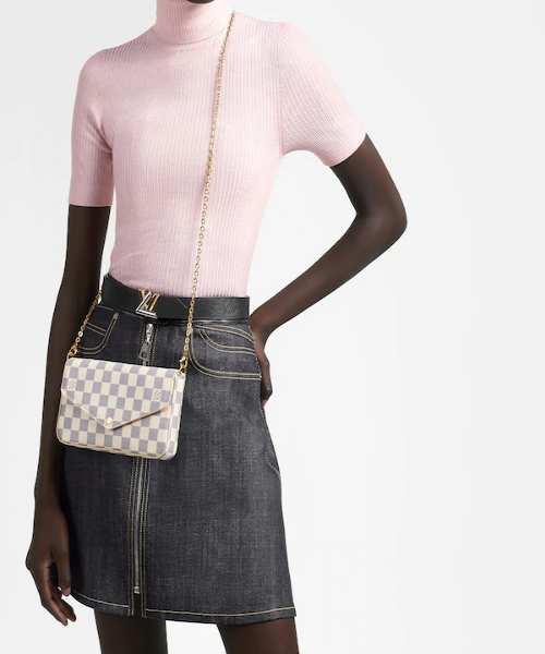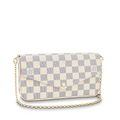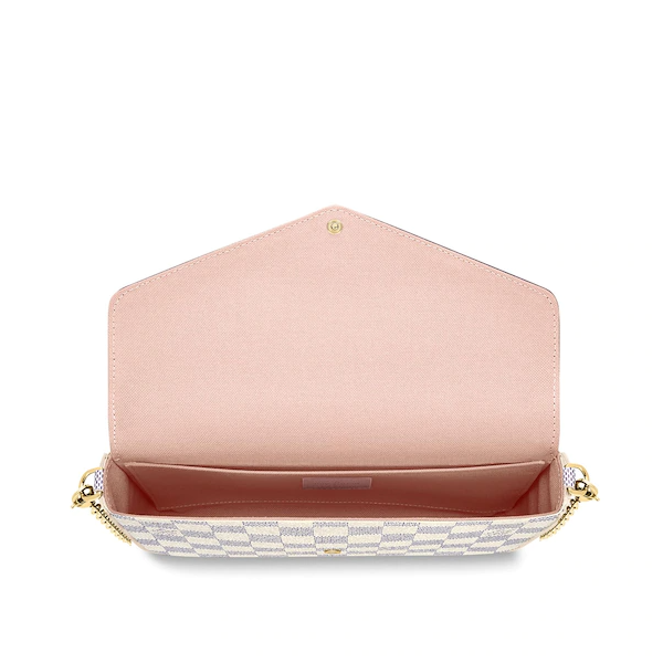 With its two removable interior pockets, the elegant Pochette Felicie in Damier Azur canvas is the stylish solution to carry and organise all your daily essentials. Much more than a wallet, it can be transformed into a glamourous shoulder bag or clutch thanks to its removable golden chain.