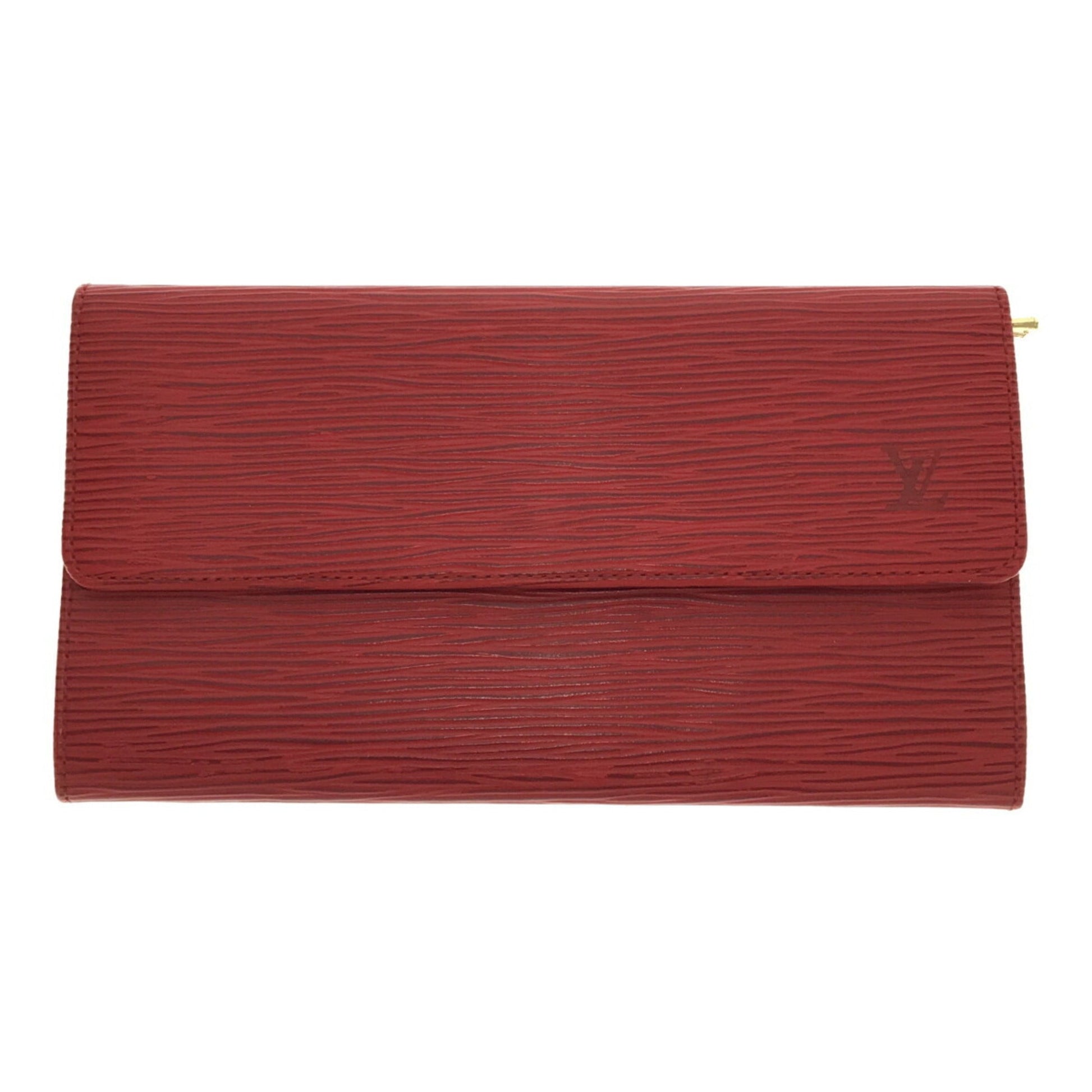 Louis Vuitton Pochette Porto Mone Credit M63577 Epi Leather Red Gold Metal Fittings Bifold Long Wallet Women's