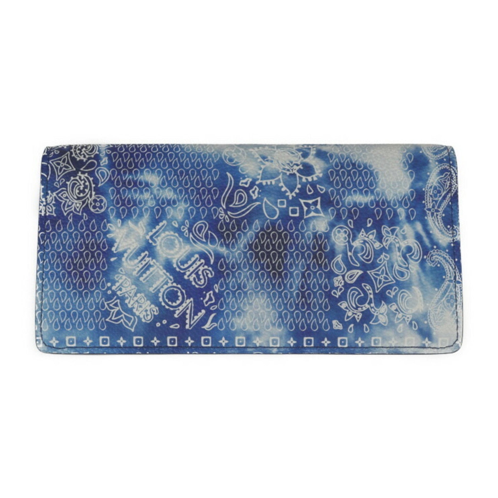 LOUIS VUITTON Portefeuille Brother Monogram Bandana Bifold Wallet M81405 Leather Blue White Long