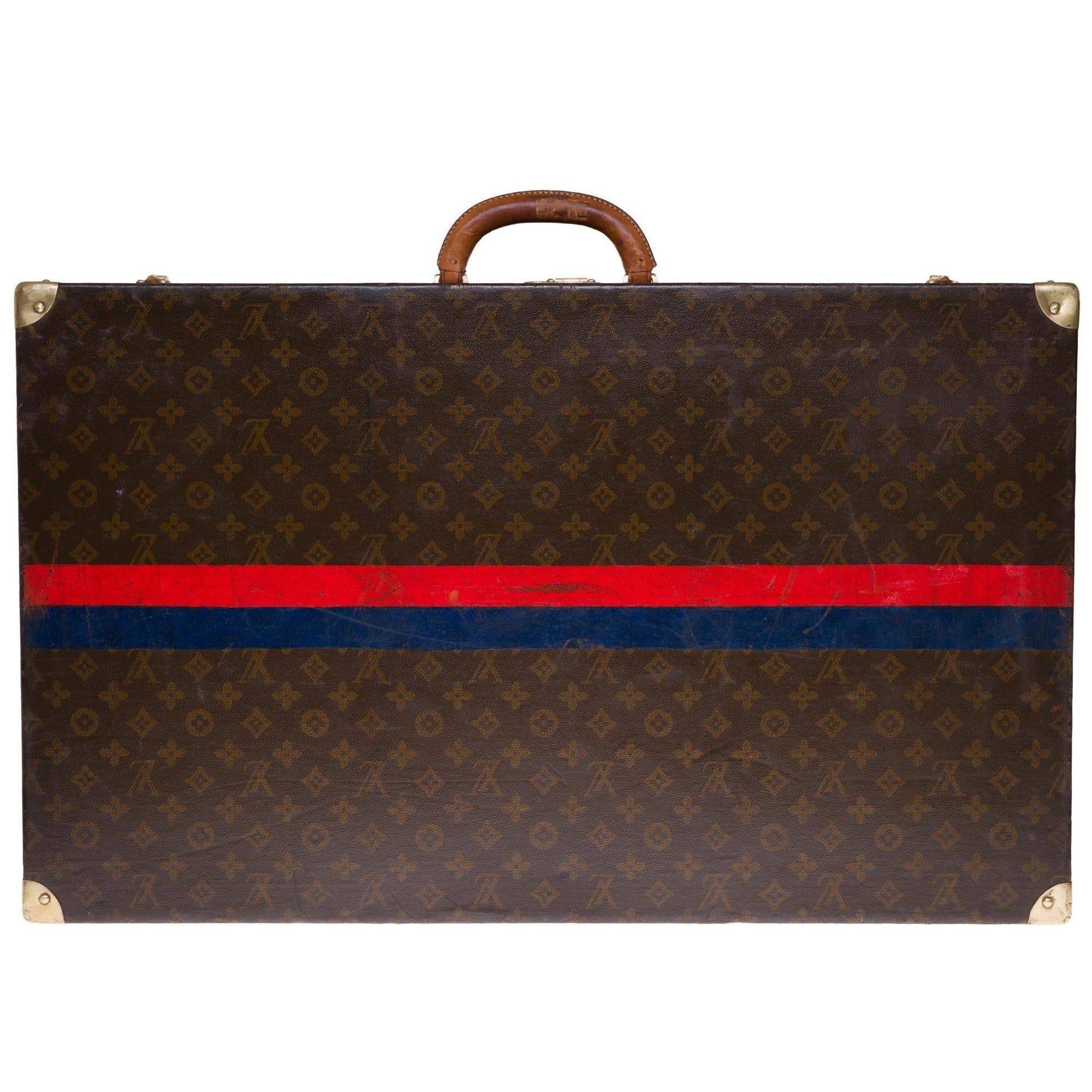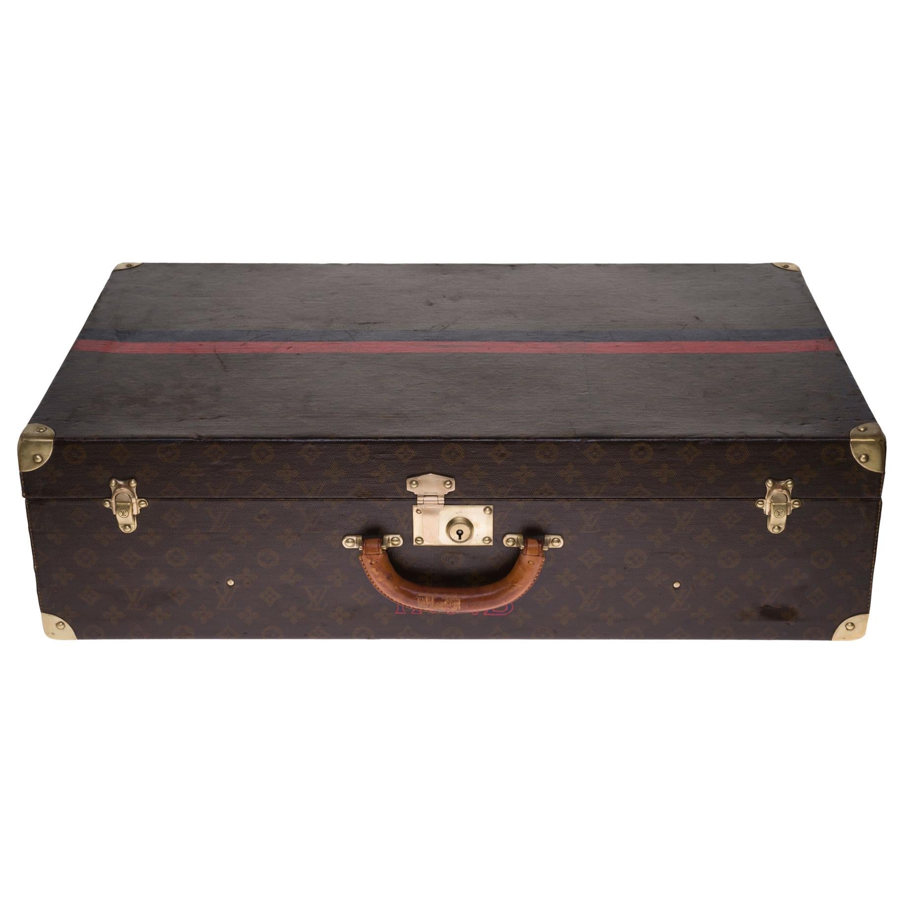 Beautiful decorative and collectible object: Louis Vuitton Suitcase 75cm in monogram canvas, label with serial number, brass hardware, natural leather handle allowing a handstand.