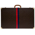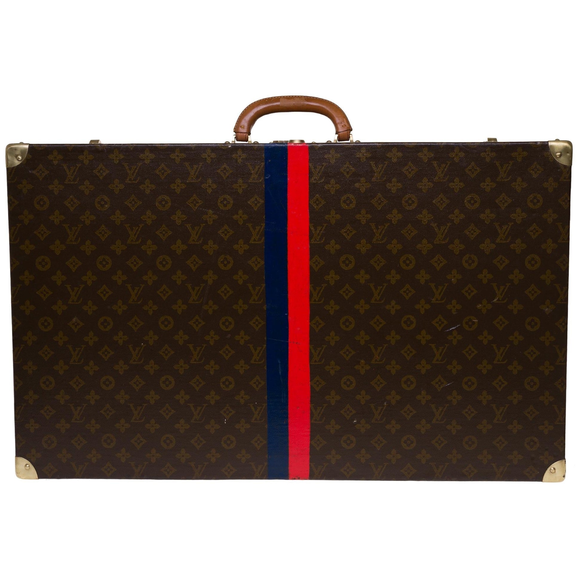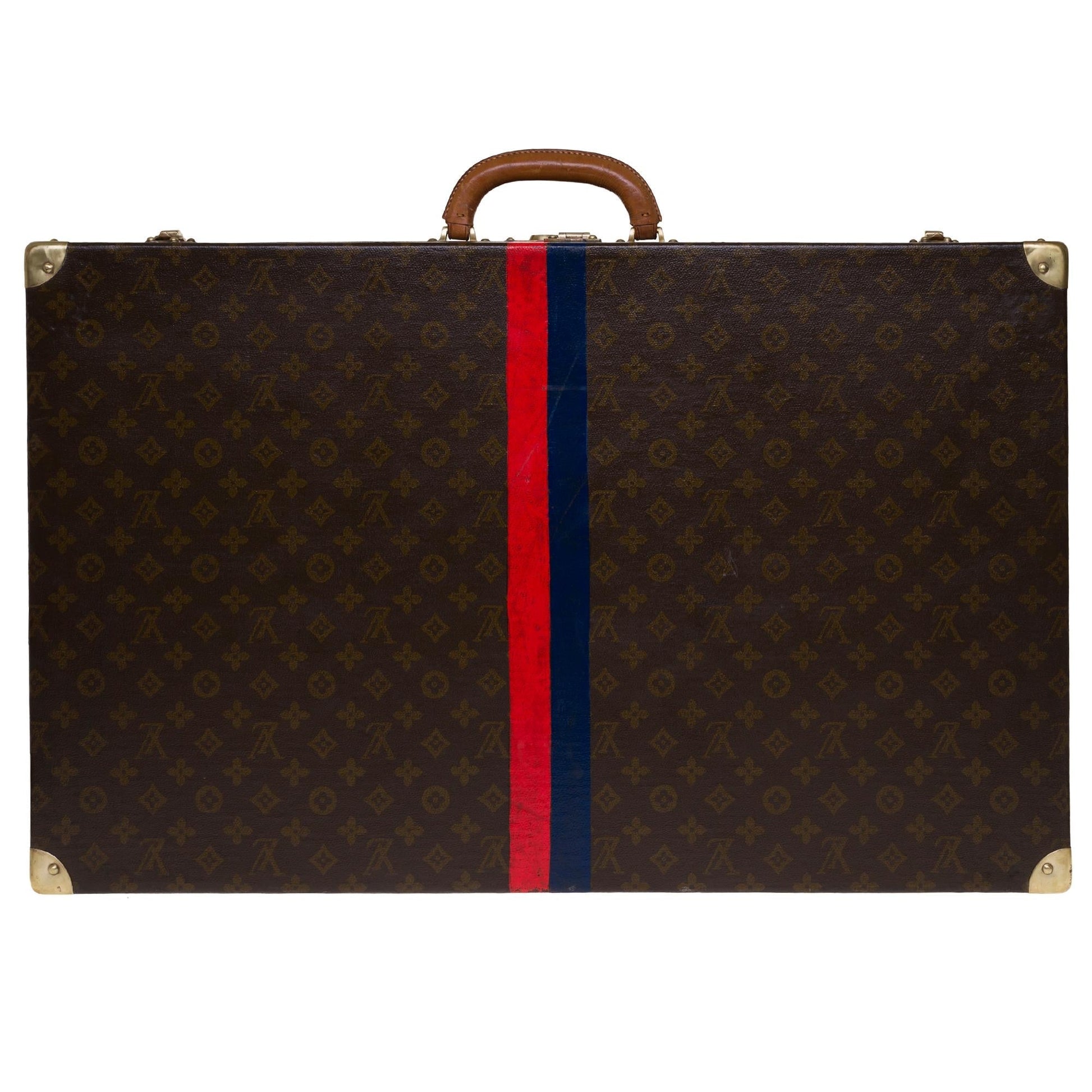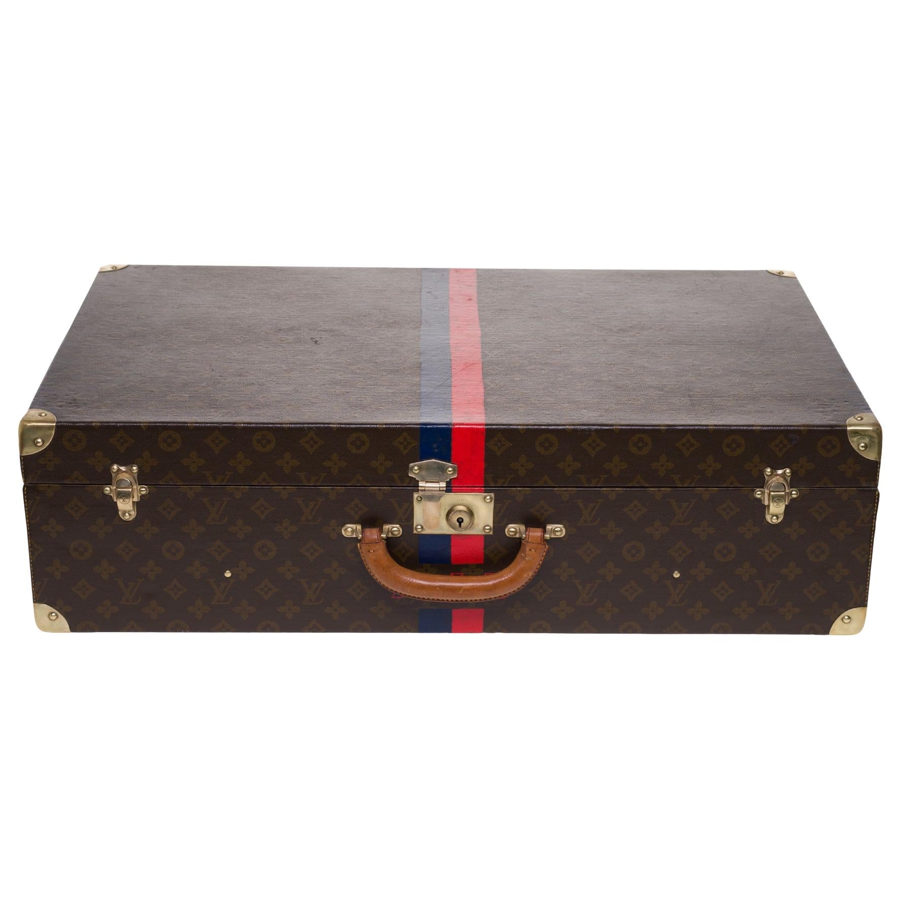 Beautiful decorative and collectible object: Louis Vuitton Suitcase 75cm in monogram canvas, label with serial number, brass hardware, natural leather handle allowing a handstand.