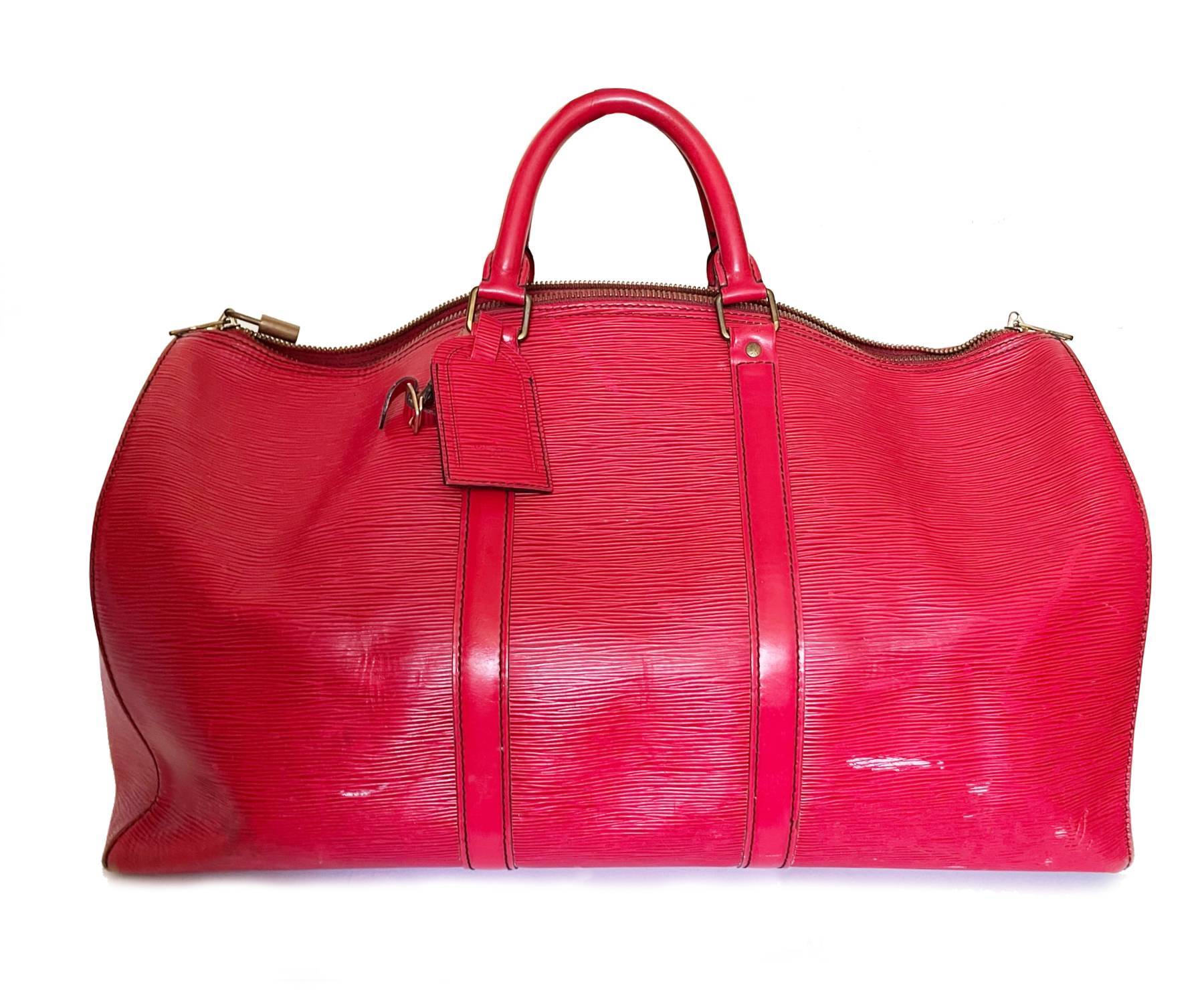 Louis Vuitton Red Epi Leather Keepall 50 Travel Bag.