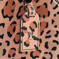 This very rare, limited edition bag features monogram reverse canvas, leopard embossed leather, brown corduroy trim, silver hardware, black calfskin leather trim, tonal stitching, push lock closure, adjustable leather top handle and comes with a removable, adjustable shoulder strap with a removable leather luggage tag. The interior is lined in lambskin leather with one open pocket.