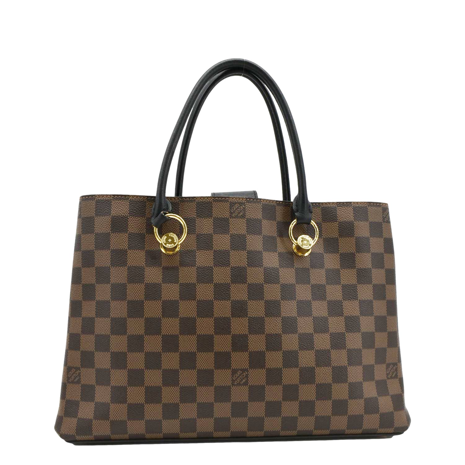 The LOUIS VUITTON LV Riverside Damier Ebene Shoulder Bag in Black combines the timeless Damier Ebene canvas with luxurious leather accents. It features a spacious interior and elegant top handles for both style and functionality.