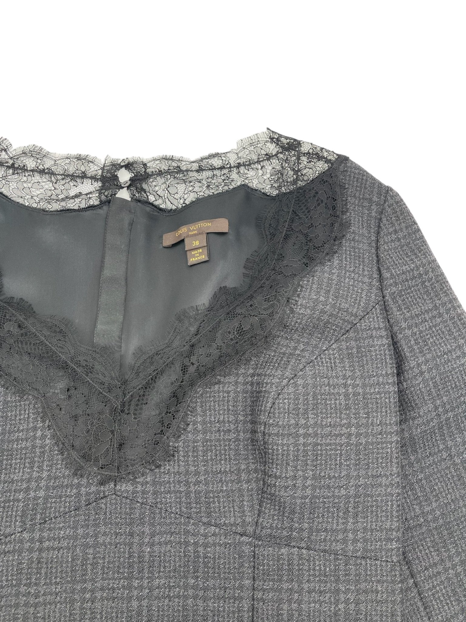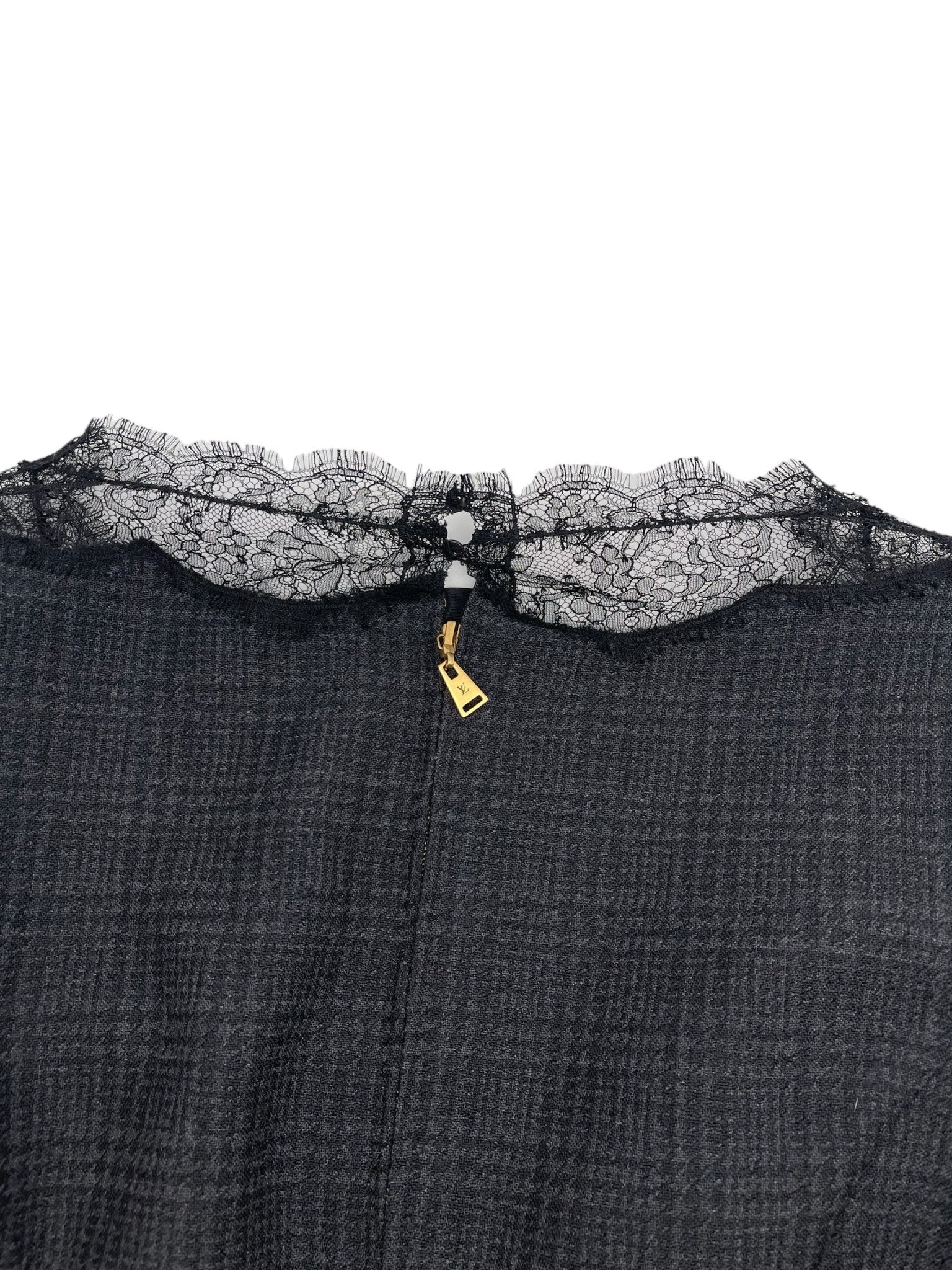 - Détails : Col et bas de la robe en dentelle, fermeture à zip et boutons dans le dos