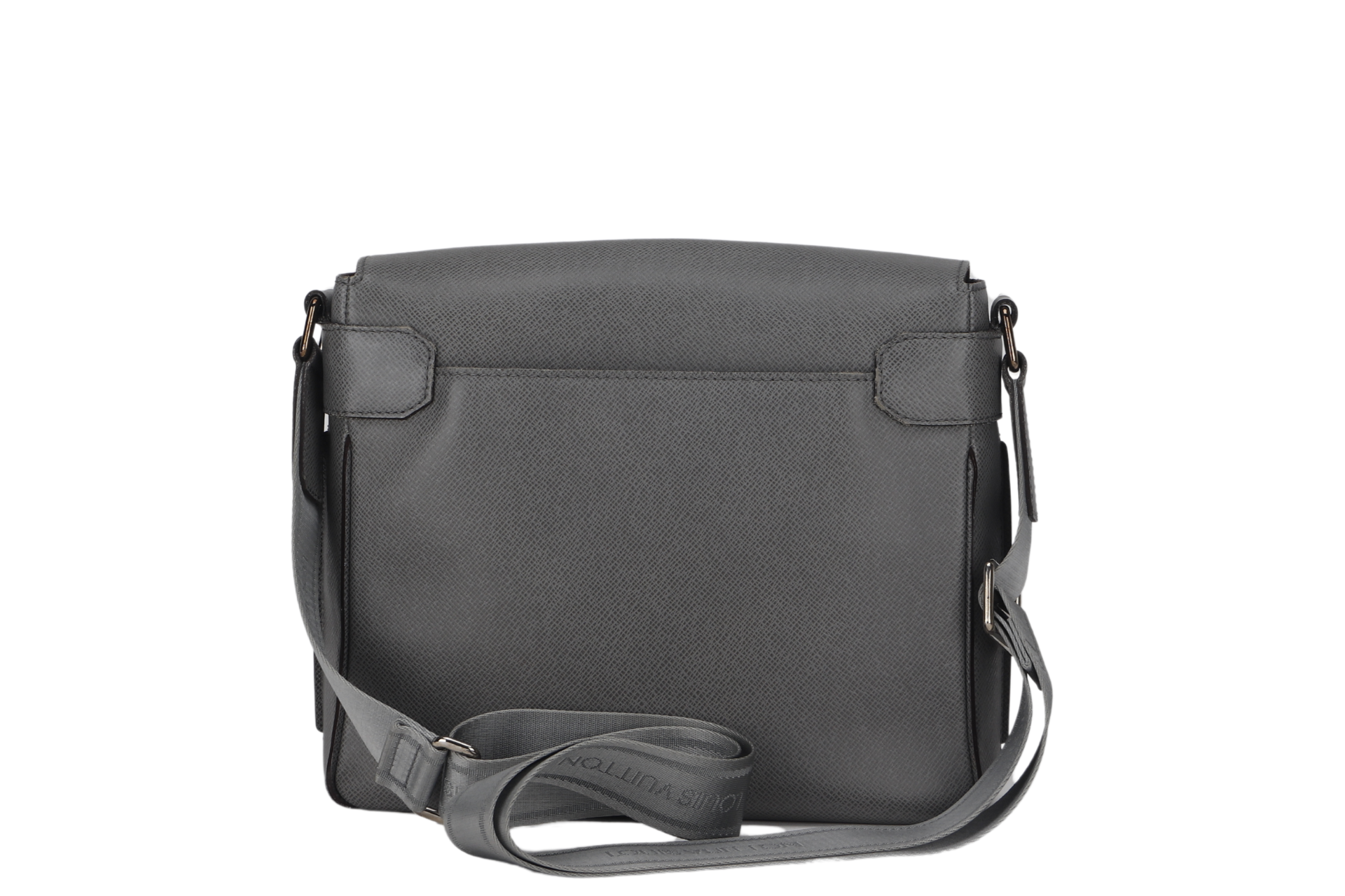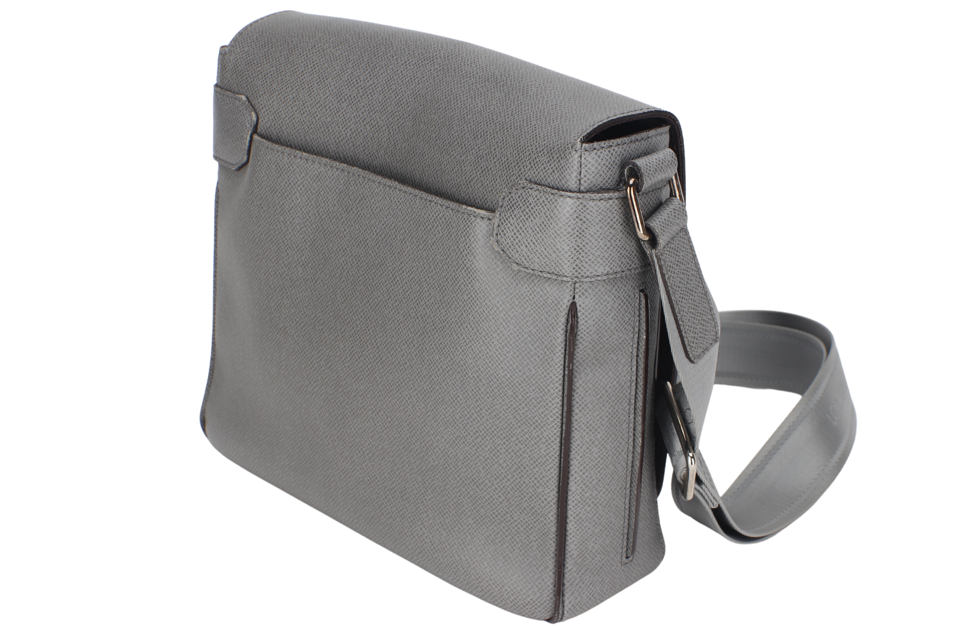 LOUIS VUITTON ROMAN GREY LEATHER MESSENGER BAG SILVER HARDWARE WITH DUST COVER
