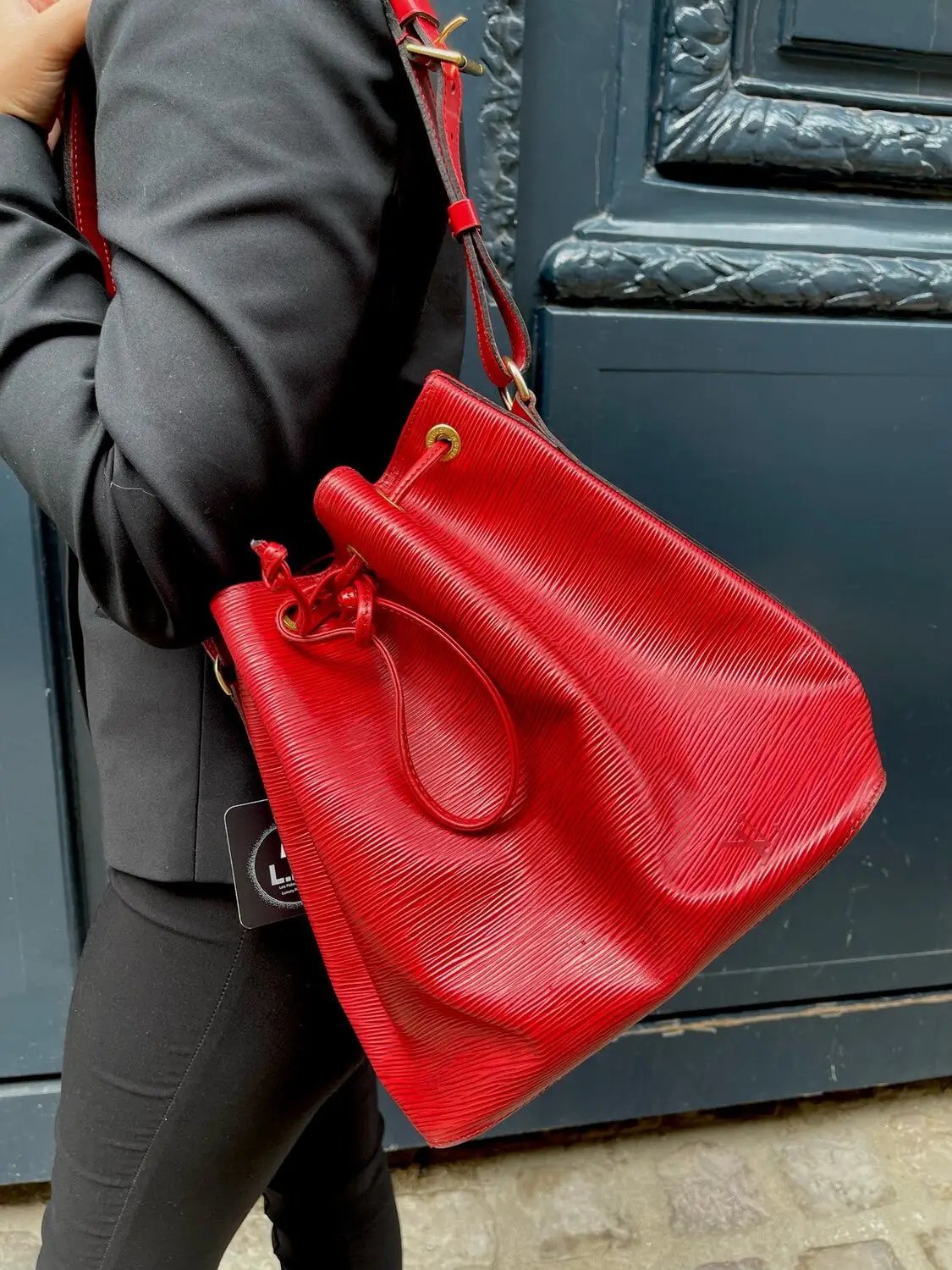 Sac en cuir épi rouge carmin. L’intérieur est en daim. L’article est en parfait état.