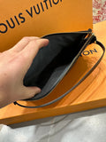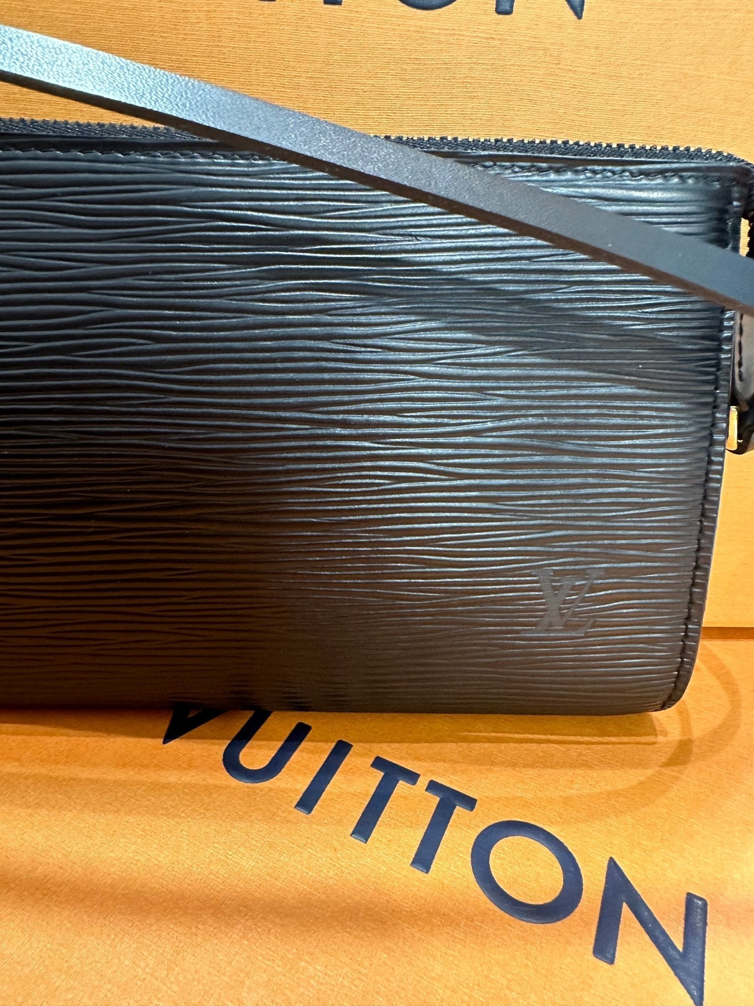Iconique pochette accessoires en cuir épi noir, parfait pour nos indispensables de tous les jours.