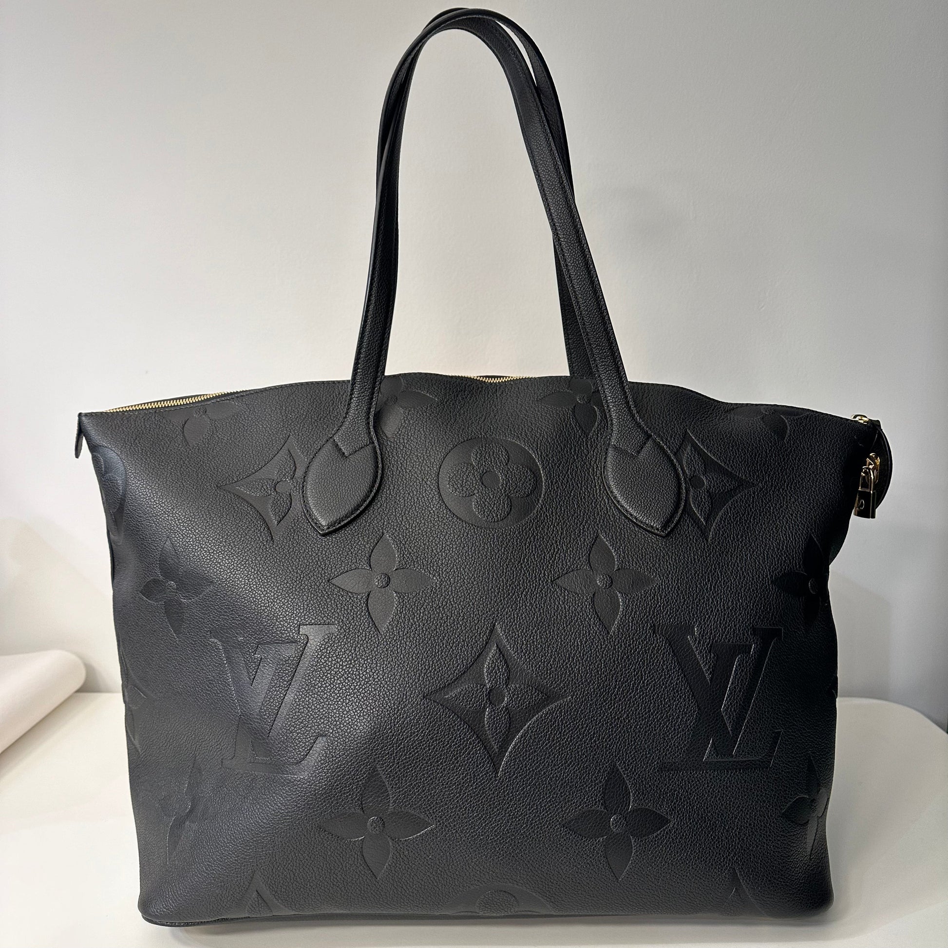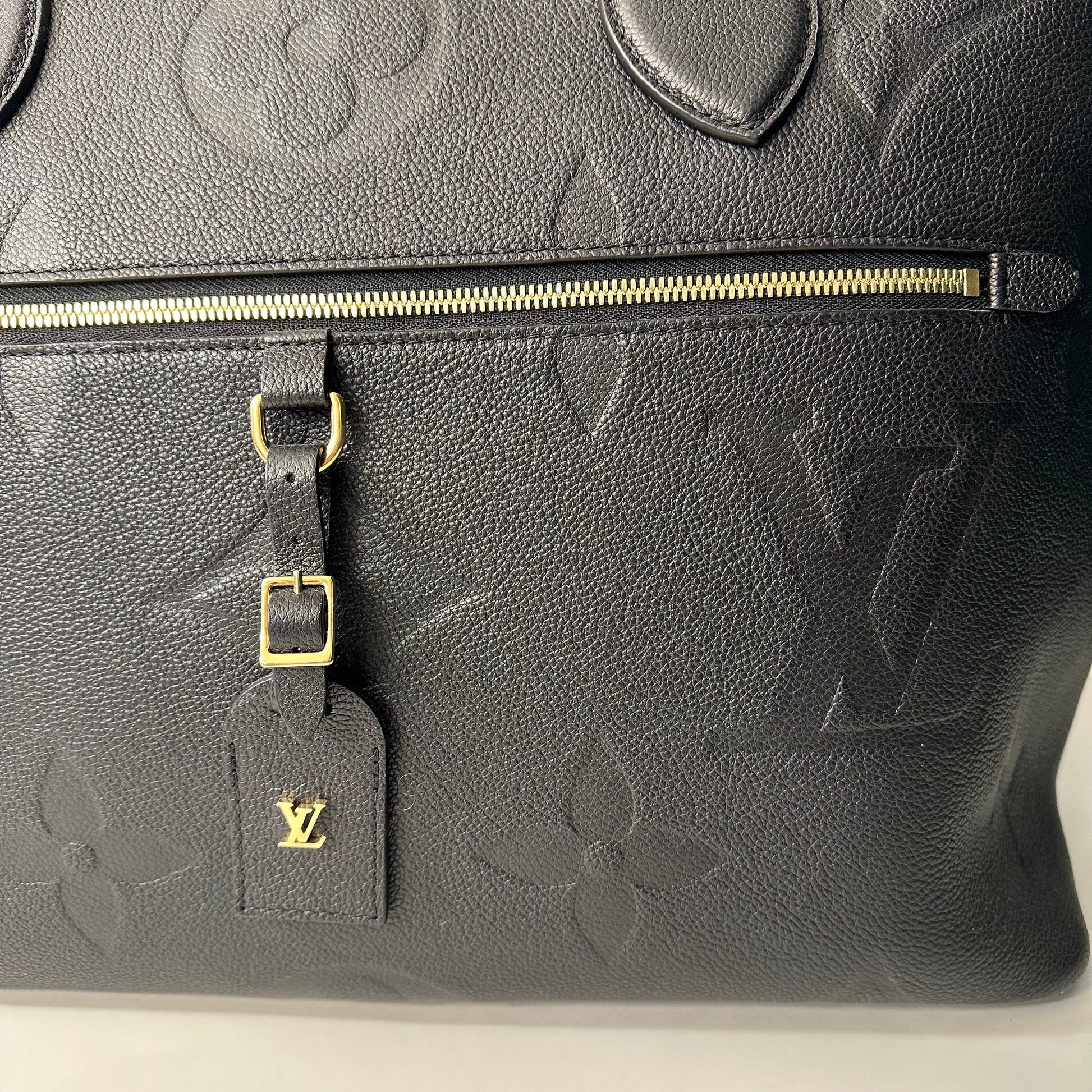 Idéal pour les escapades du week-end, ce sac Travel est confectionné en cuir Monogram Empreinte habillé d'un motif Monogram oversize embossé. Ce modèle spacieux et léger se transporte avec aisance grâce à ses deux longues poignées en cuir. La tirette LV Circle et le porte-adresse en cuir signent cette pièce.