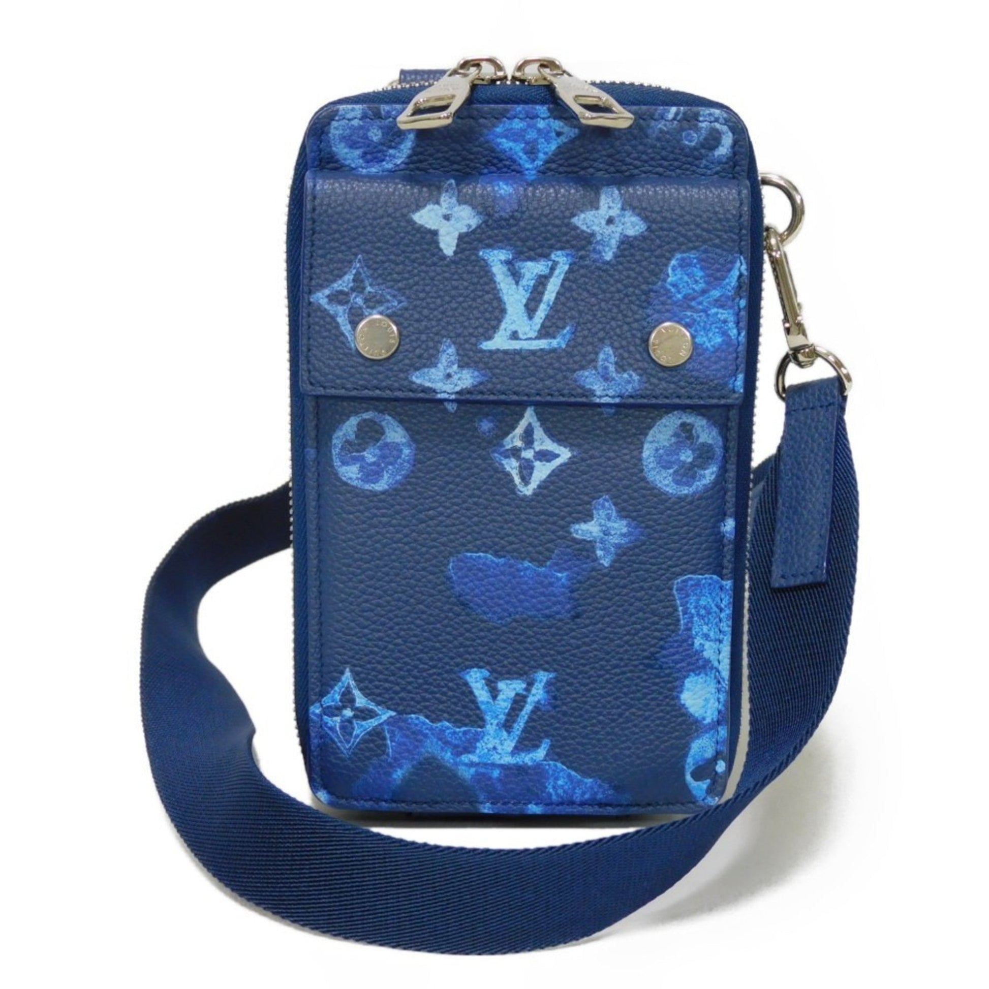 LOUIS VUITTON Shoulder Bag Phone Pouch LV Logo Flower Crossbody Monogram Water Color Navy Blue M80466 Men's