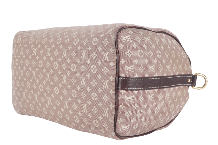 LOUIS VUITTON SPEEDY BANDOULIERE 30 MINI LIN CANVAS GOLD HARDWARE WITH DUST COVER, STRAPS, LOCK AND KEYS