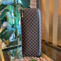 Crafted from durable Damier Ebene coated canvas, this Louis Vuitton Pegase 50 suitcase combines timeless elegance with practicality. Its compact size and smooth-rolling wheels make it an ideal travel companion for stylish getaways.