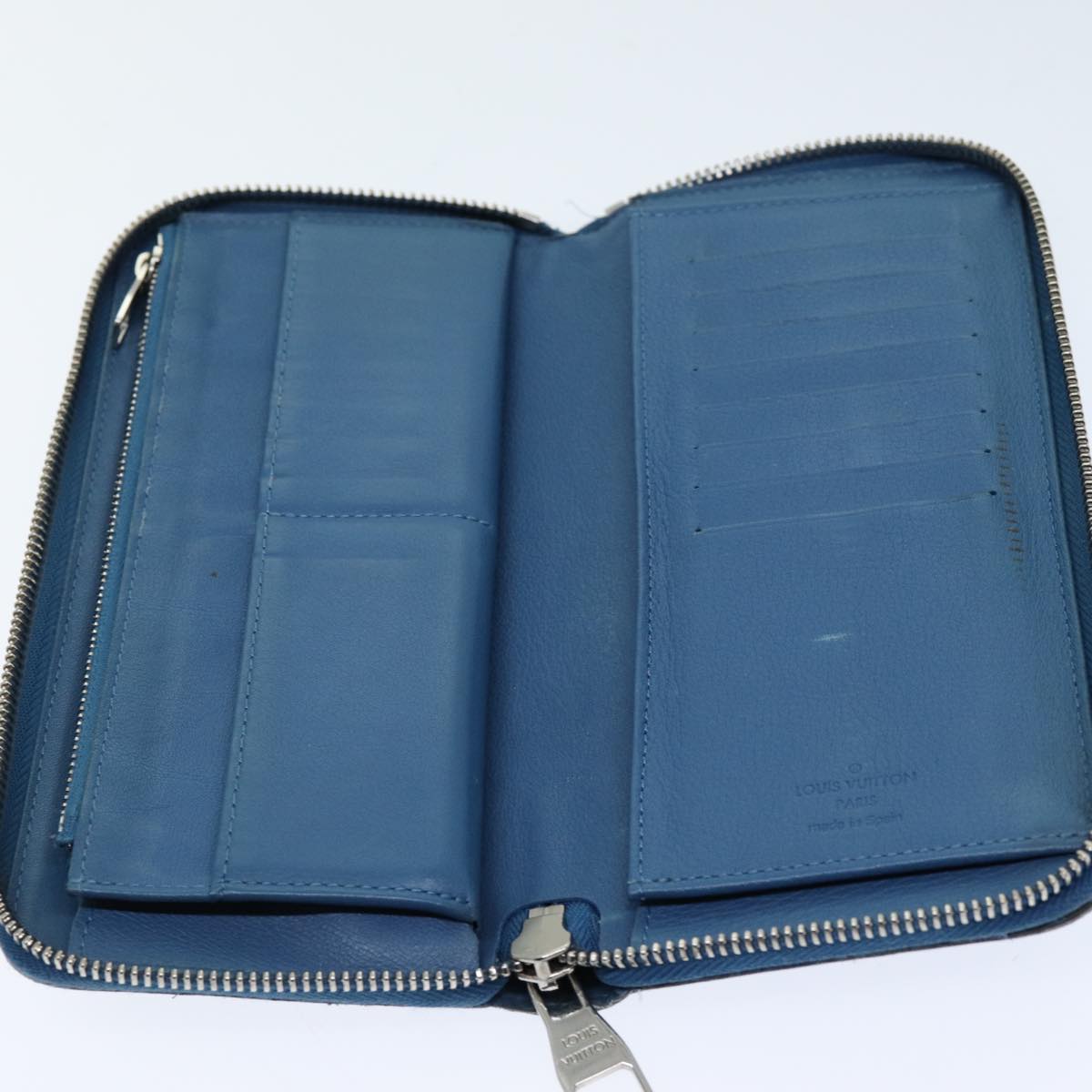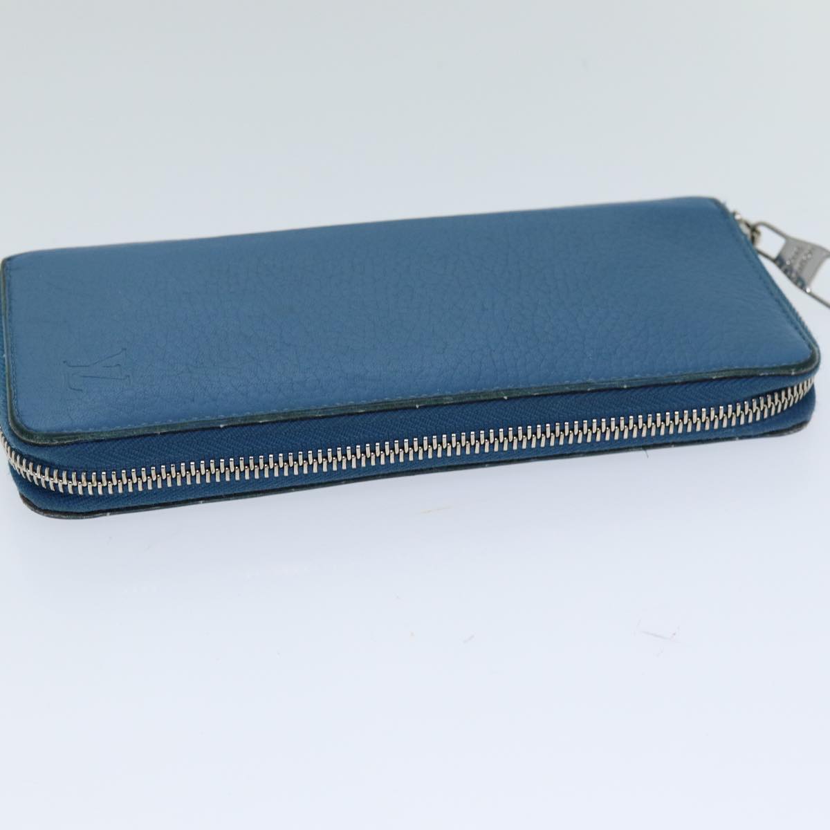 LOUIS VUITTON Suhari Zippy Wallet Long Wallet Leather Blue LV Auth 75512