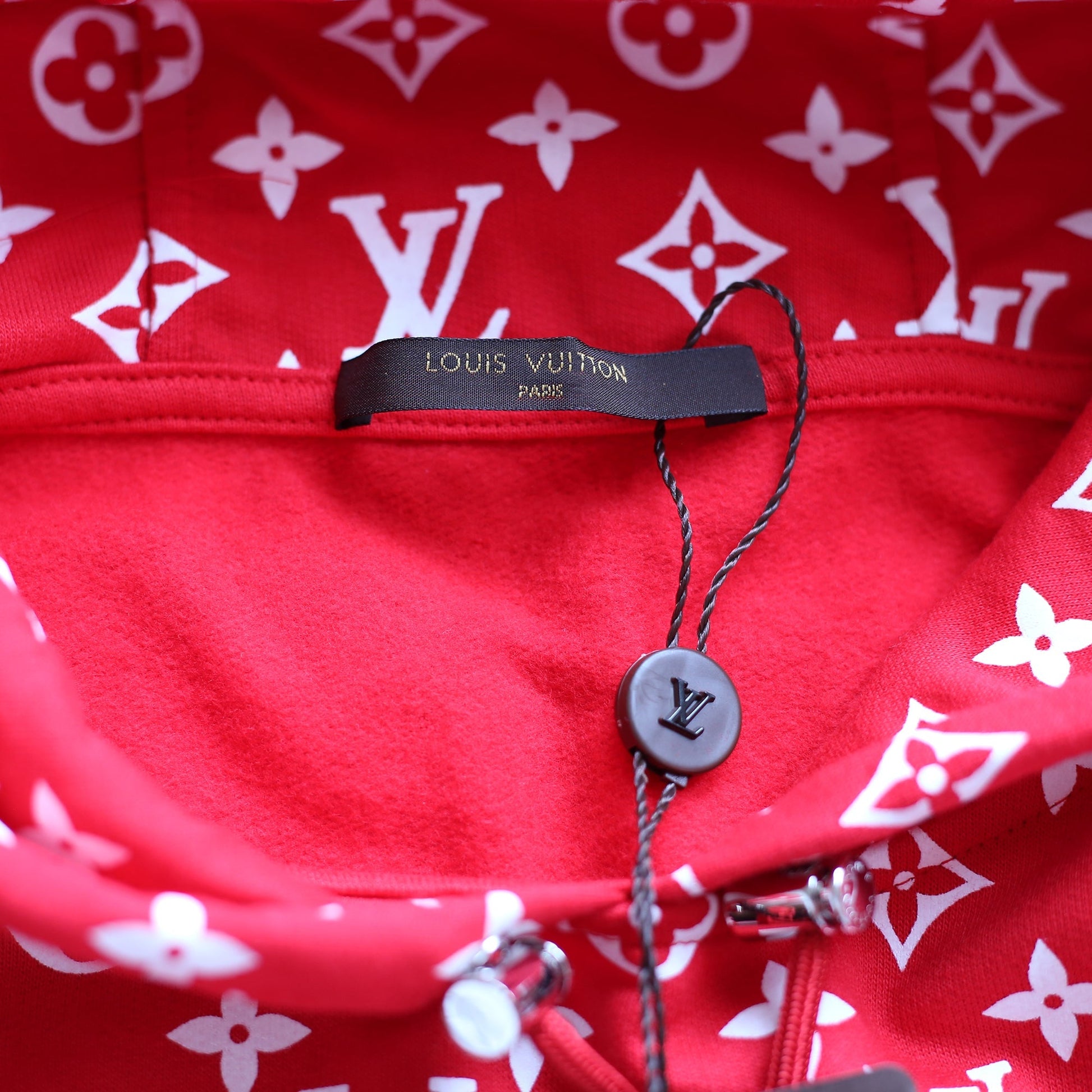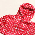 Characteristics: This Sweatshirt is an iconic item to add to any Supreme-lover's collection. Sold on the reselling market for up to $25,000, this hoodie will be a conversation starter. It is adorned with the Supreme logo and iconic Louis Vuitton monogram print all over.