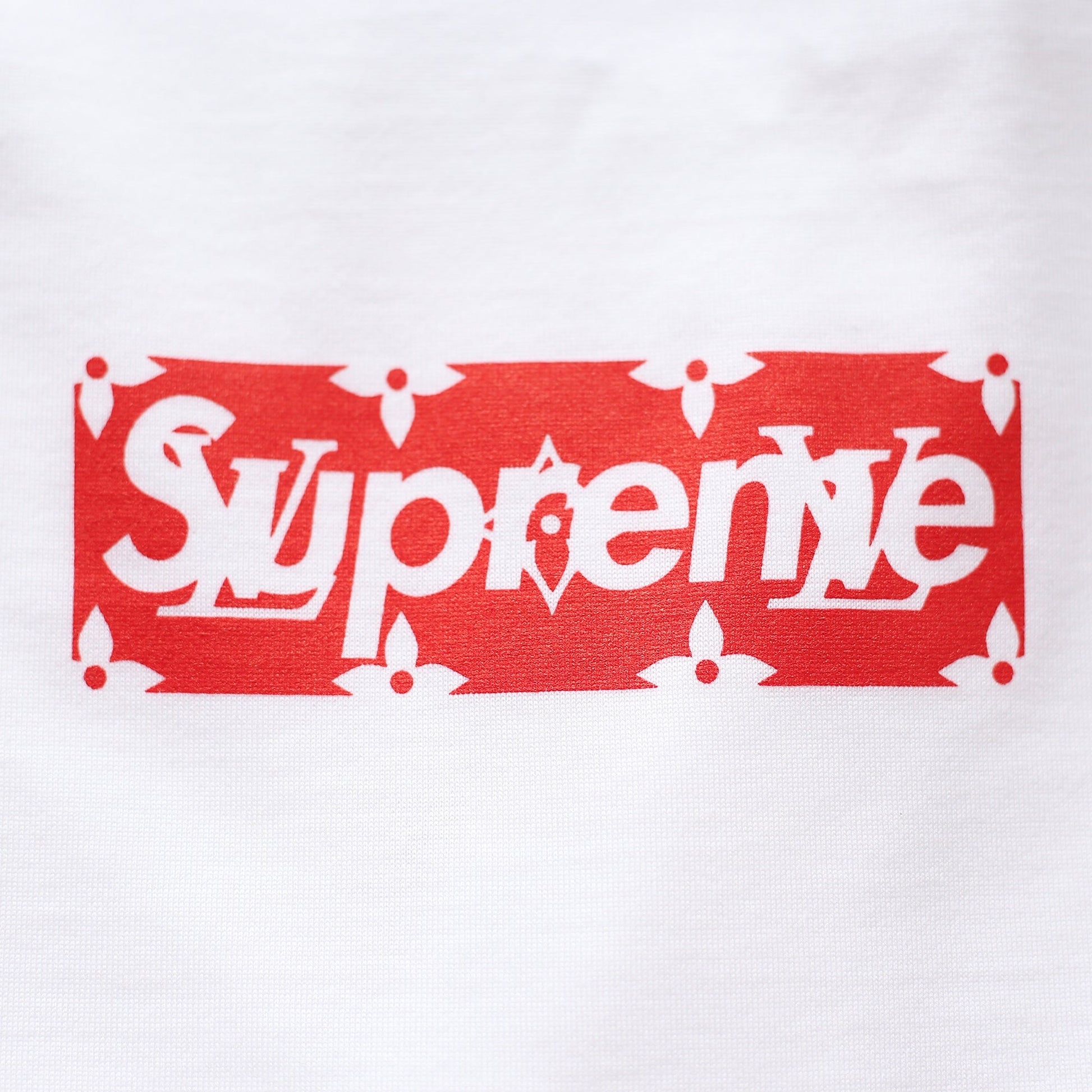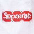 Characteristics: This T-shirt is an iconic item to add to any Supreme-lover's collection. Lightweight and airy, it will be a conversation starter. It is adorned with the Supreme logo and iconic Louis Vuitton monogram print in the top-center.