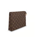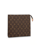The largest of the toiletry pouch in Monogram canvas boasts a spacious interior with gusset sides for easy storage. It slips easily into a handbag.