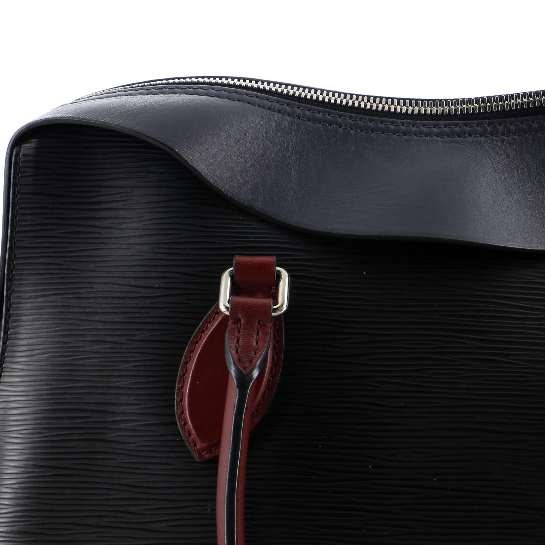 Elevate your style with the Louis Vuitton Tuileries Handbag in luxurious Epi leather. This iconic piece features a chic tricolor design, blending black, white, and caramel tones seamlessly. The structured silhouette is both elegant and practical, with a spacious interior and multiple compartments for effortless organization. Finished with silver-tone hardware and the signature LV twist lock, this handbag is a timeless addition to any fashion-forward wardrobe. Upgrade your look with the Louis Vuitton Tuileries Handbag and make a sophisticated statement wherever you go.