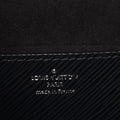 Characteristics: This waist-length cross-body shoulder handbag is made out of a textured Epi leather in black. It has a bold, shiny silver LV clasp on the facing flap (the "L" twists into a "V", aligning with the other "V" that unlocks the flap to open the bag). The flap opens to a natural microfiber interior with small patch pockets.