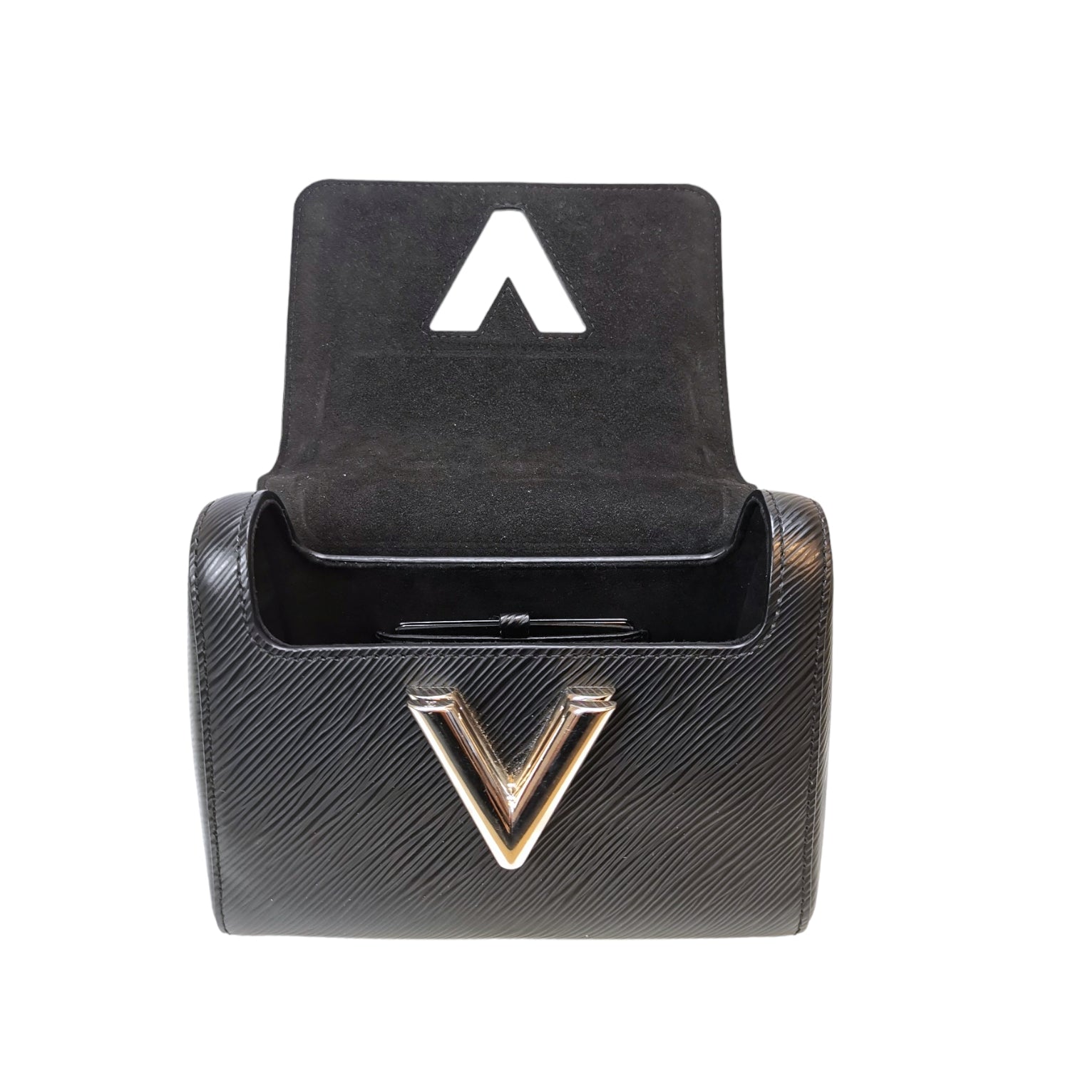 The Louis Vuitton Twist was first introduced in 2015 in the groundbreaking Cruise collection. This model was made of sturdy Epi leather in black. The twist closure in silver-tone metal gives the Bag that certain something. The interior features a large and small open compartment, which is also equipped with a removable mirror. Thanks to the wavy bottom of the bag, model offers unexpectedly large space and is a perfect fashionable companion for the day as well as for the evening. The chain can be doubled over the shoulder or extended diagonally on the body.