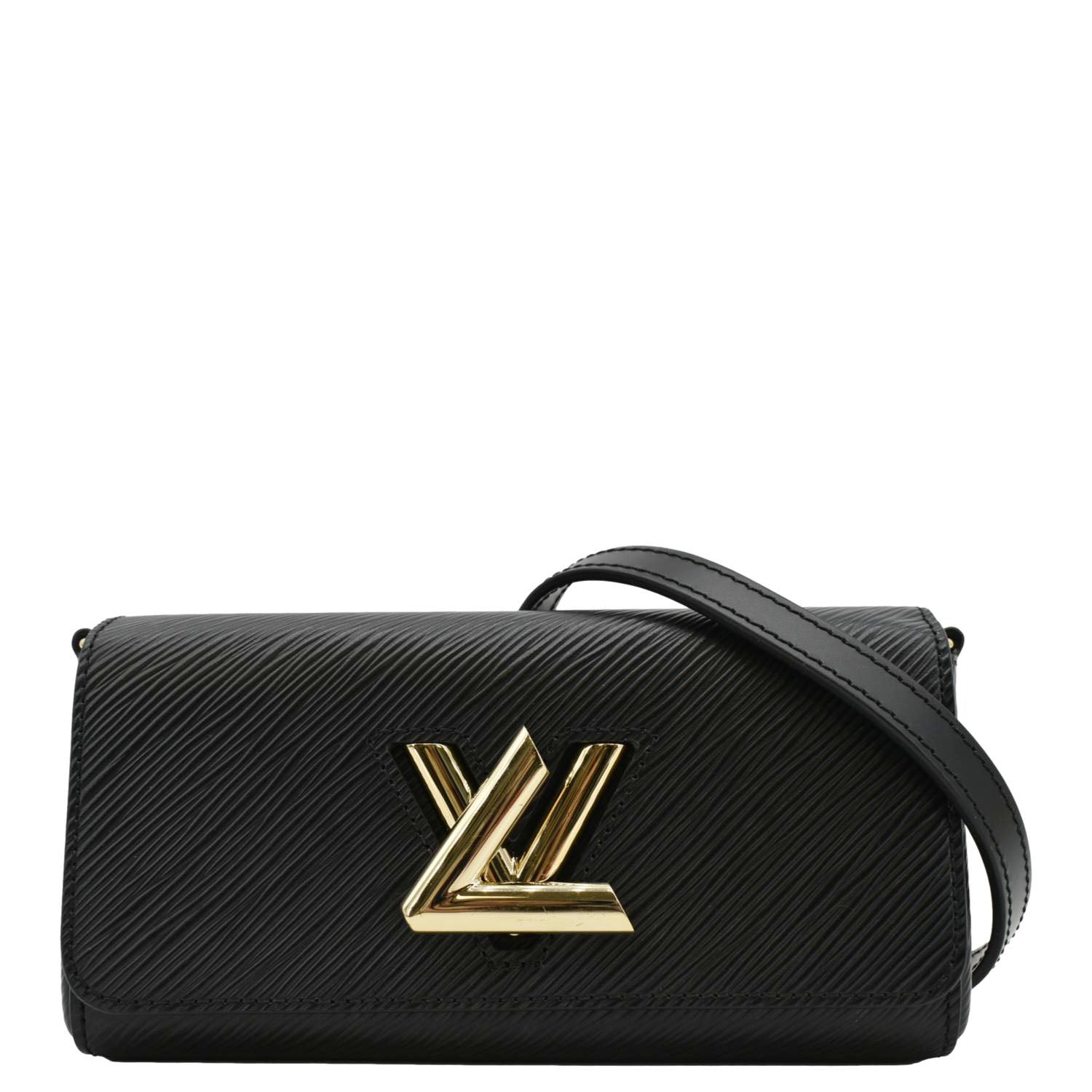 The LOUIS VUITTON Twist West Epi Leather Crossbody Pochette Bag in Black features the signature LV Twist lock and sleek Epi leather. This chic and versatile bag offers a modern design, perfect for both casual and formal occasions.