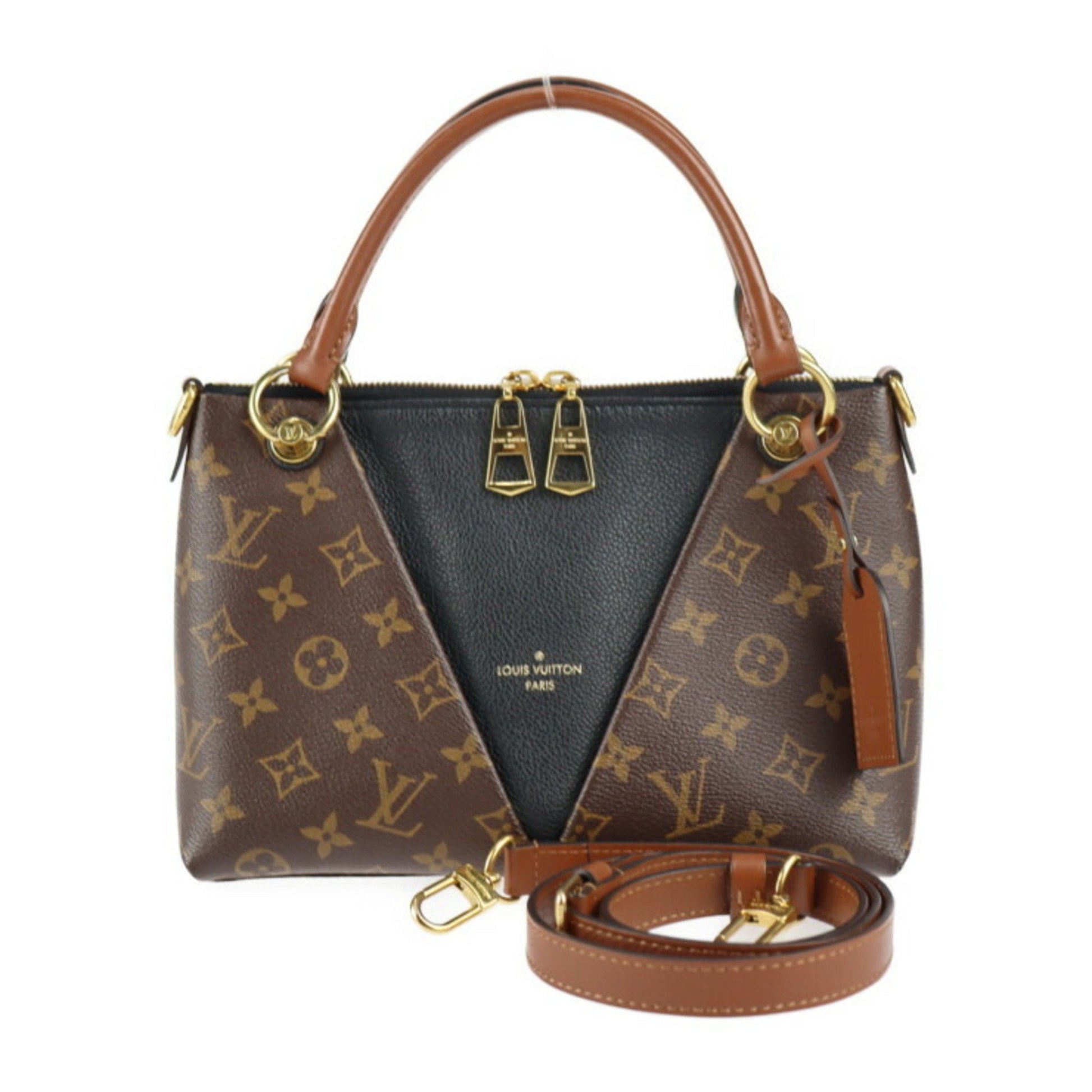 LOUIS VUITTON V tote BB handbag M43976 monogram canvas leather brown black gold metal fittings 2WAY shoulder bag