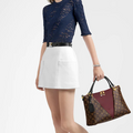 For Fall-Winter 2018, Monogram canvas is combined with grained leather in the V Tote MM handbag. It features a front panel of cowhide leather in a V shape, evocative of the initial of Vuitton, that hides a zipped front pocket. The gold-tone hardware and LV engraved handle-mount rings add shine to this elegant and functional bag.