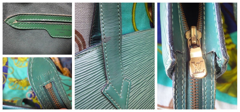 Unique V-shaped triangle tote bag! This style and in this green color has been getting harder to find in the market! Will match with any occasion or dresses as a great accent! The LV logo is embossed at lower right hand side at front.