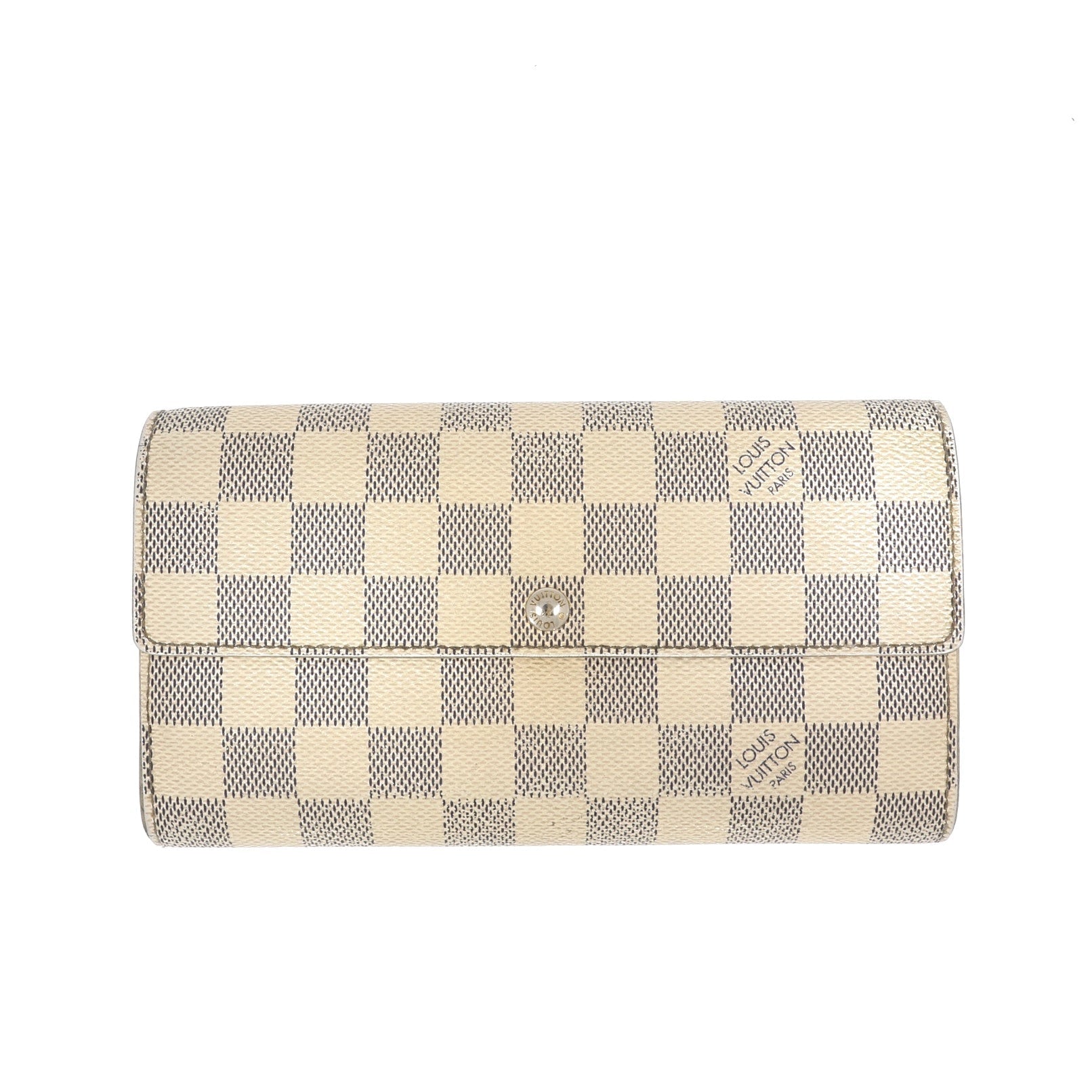 This stylish wallet is crafted of Damier canvas in White and Blue