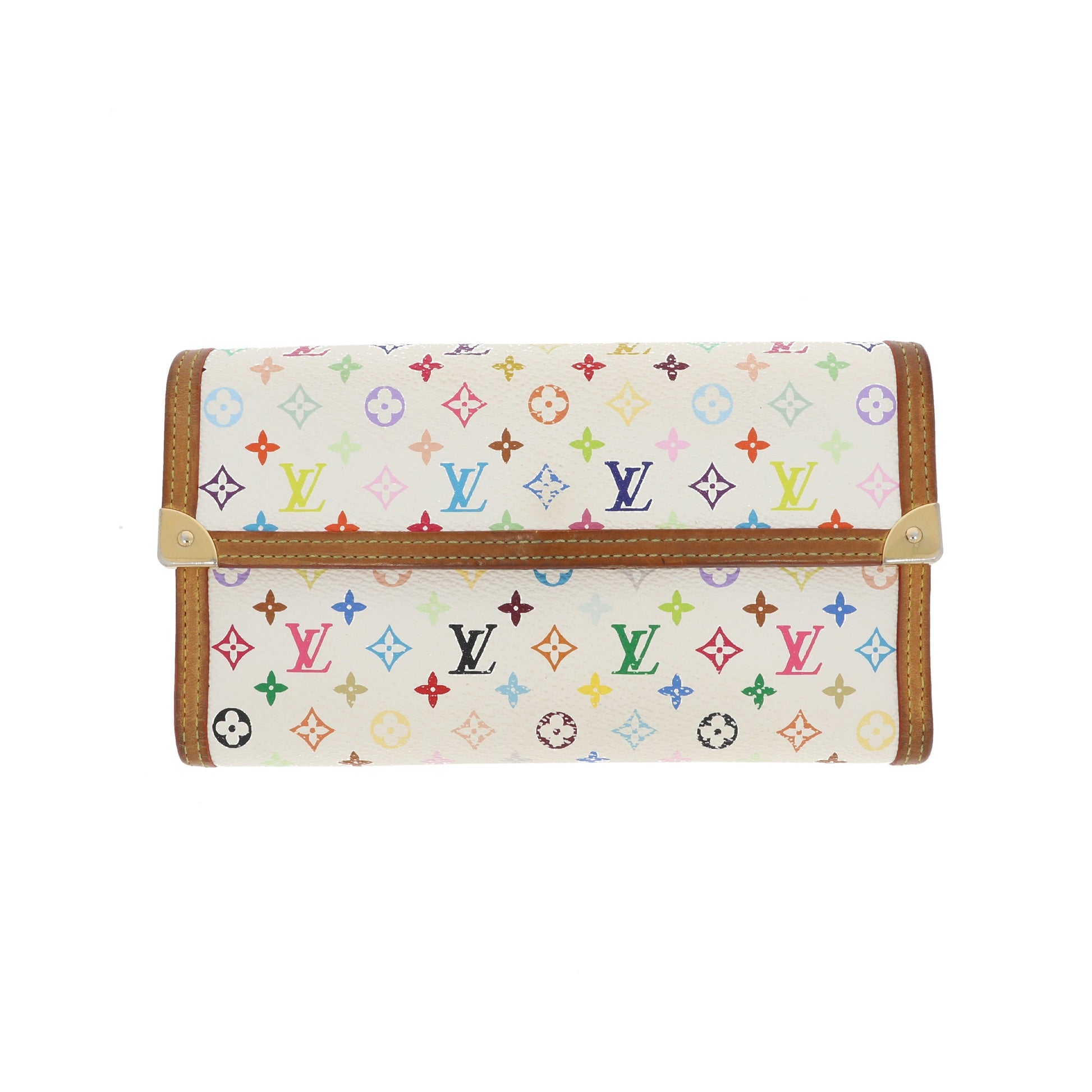 This wallet is constructed Canvas in White with multicolor logo and leather details