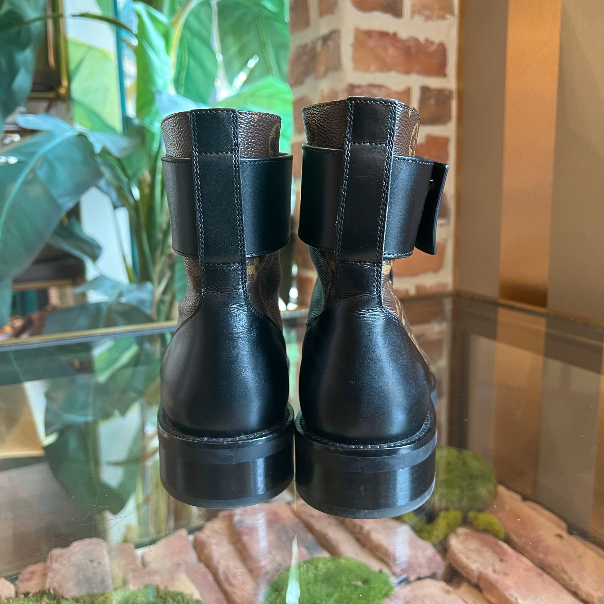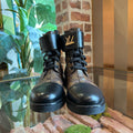 LOUIS VUITTON Wonderland Flat Ranger Black Brown Calfskin Monogram Boots SZ38.5(8.5US)