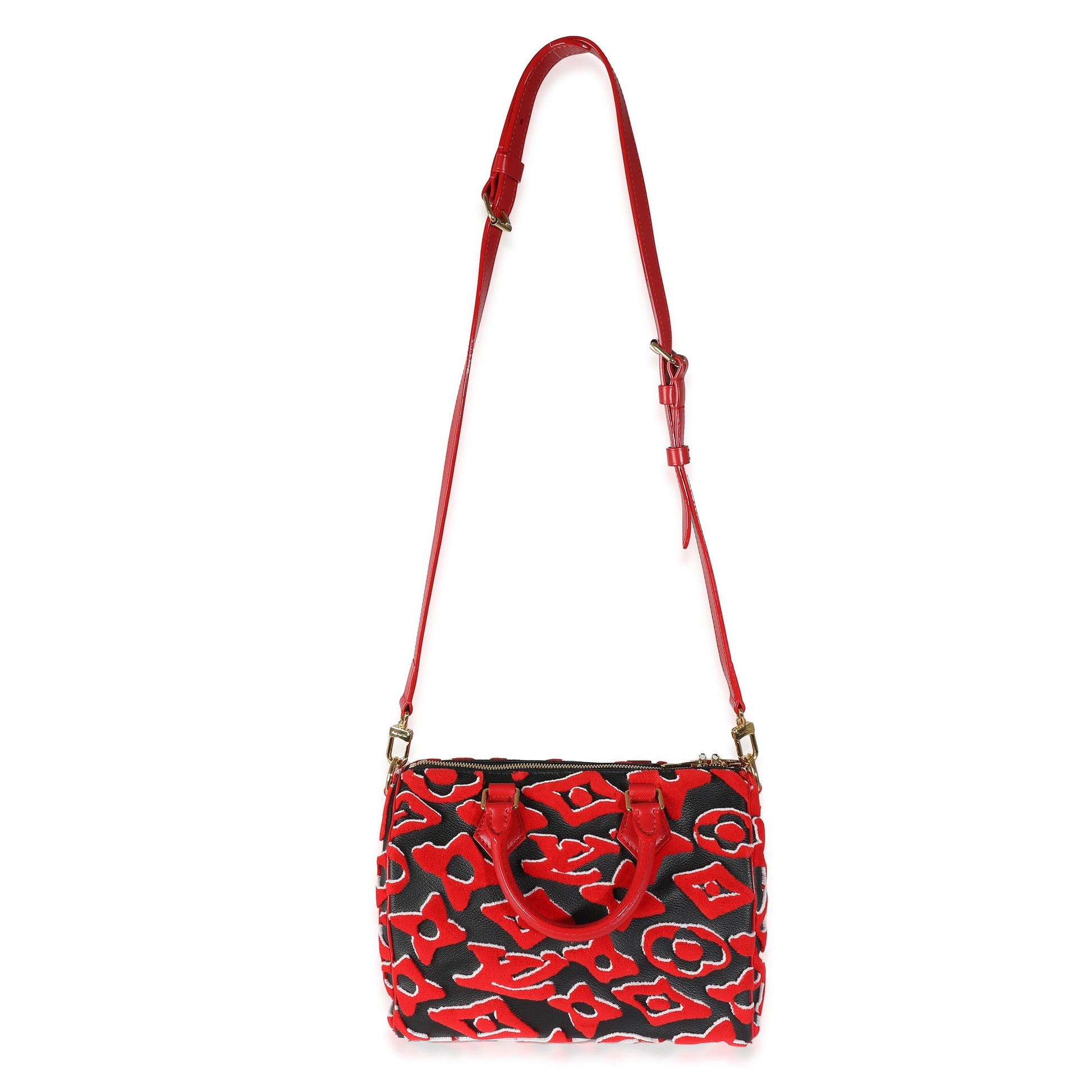 LOUIS VUITTON x UF Black Red Tufted Monogram Speedy Bandouliere 25