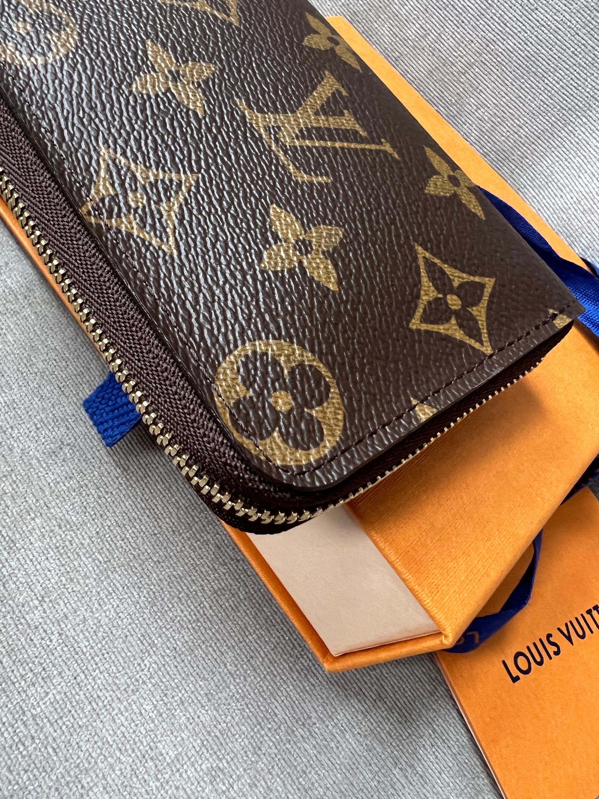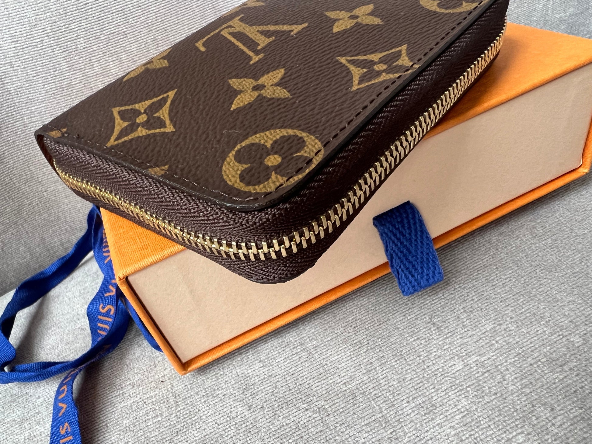 Louis Vuitton Zippy Coin Purse in Monogram Canvas with gold hardware. The Zippy Coin Purse in iconic Monogram canvas is famous for its compact design, which allows it to fit into a pocket or small bag, while still offering all essential functionalities. The LV-engraved zip provides both security and a wide opening for easy access to coins, cards and folded notes.
