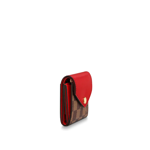 The Zoé wallet is the perfect companion: small enough to fit into a tiny bag, clutch or pocket, yet with enough space for notes, coins and credits. This version combines Louis Vuitton’s historic Damier Ebene canvas with a colorful scratch-resistant leather flap, secured with a gold-tone press-stud.