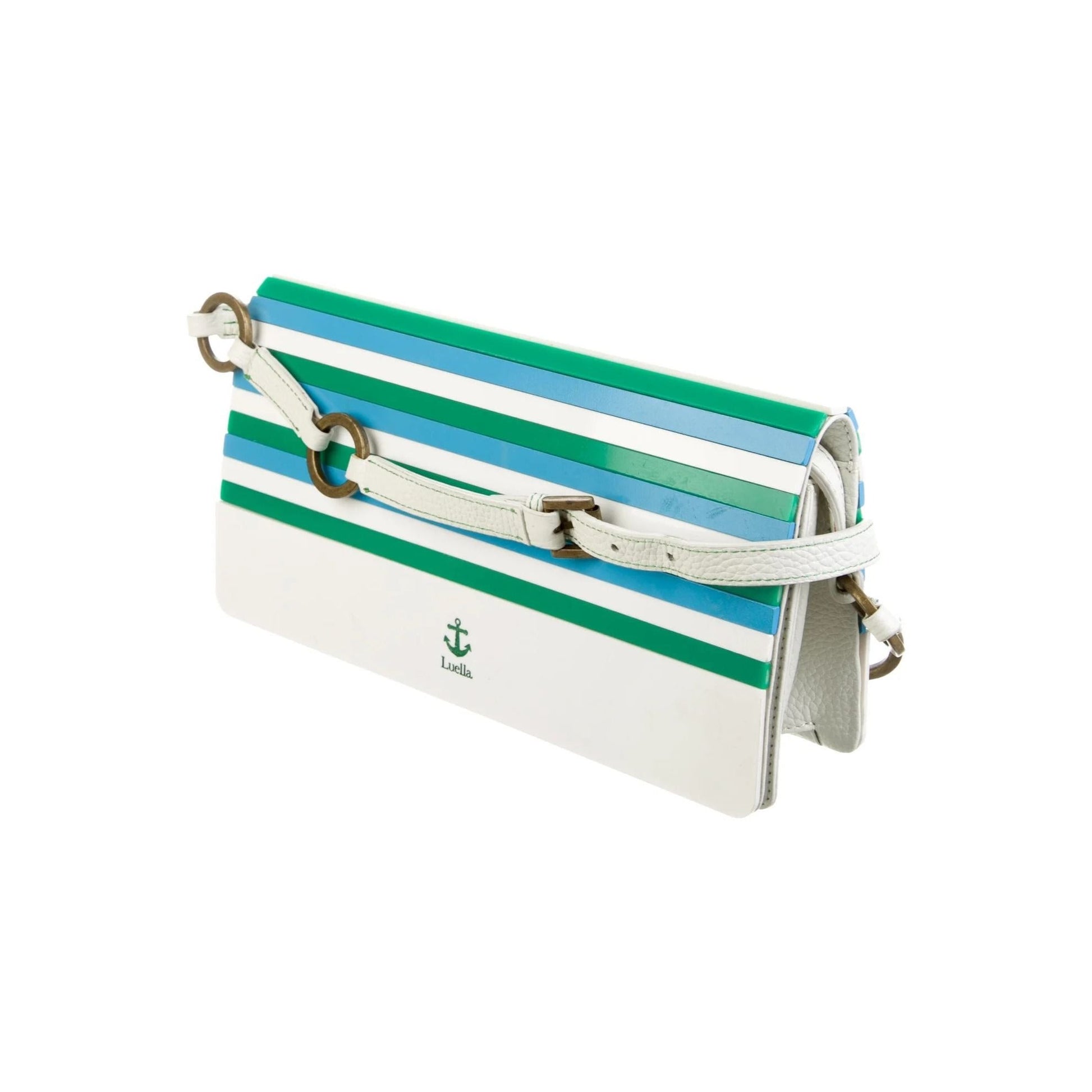 Luella White Blue & Green Acrylic Crossbody w Antique Gold