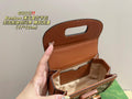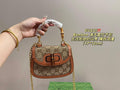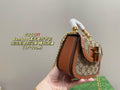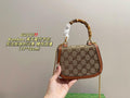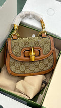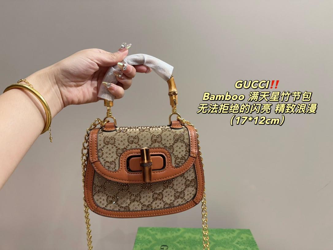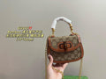 Luxury GUCCI Mini Crystal Chain Shoulder Bag Iconic Bamboo Slub Bag for Women (Brown)