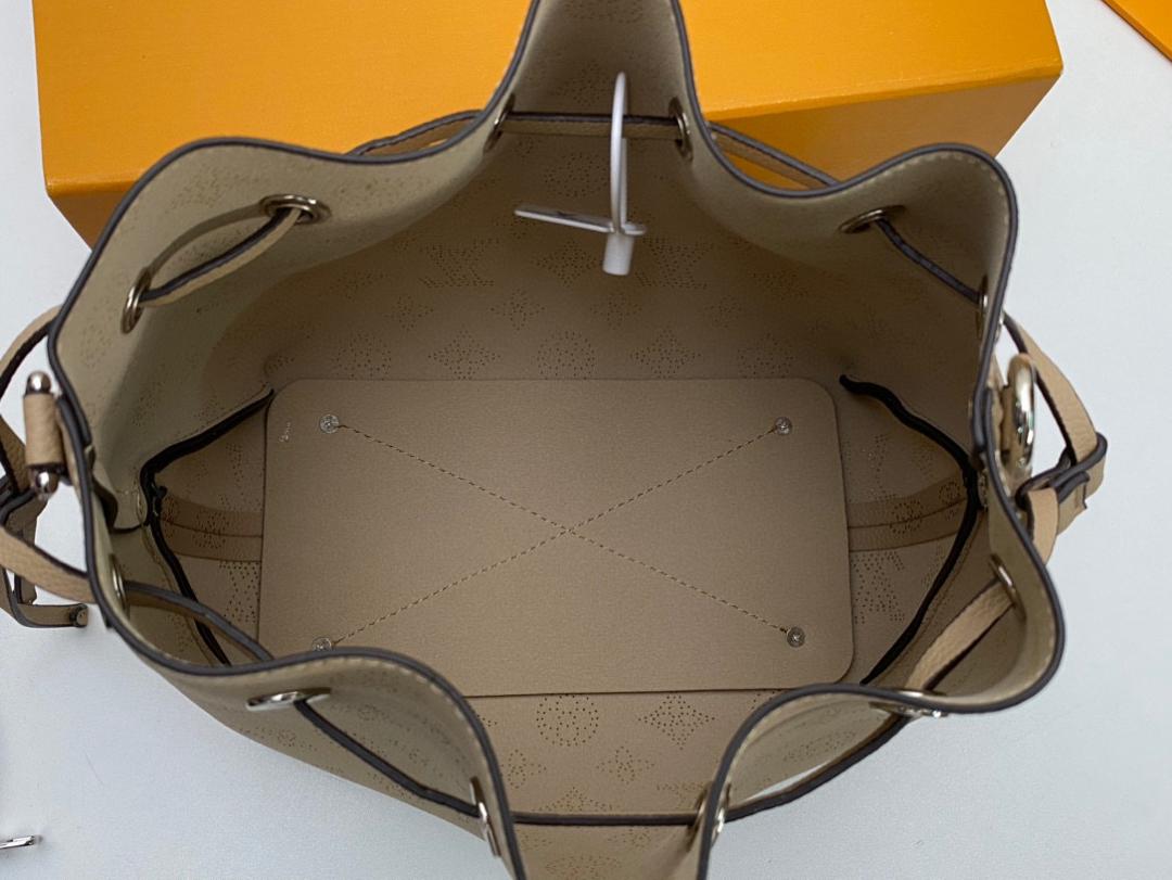 L.V Bella Bucket Bag Mahina Galet Grey For Womtlm, Womtlm’s Handbags, Shoulder And Crossbody Bags 7.5in/22cm LV M57201