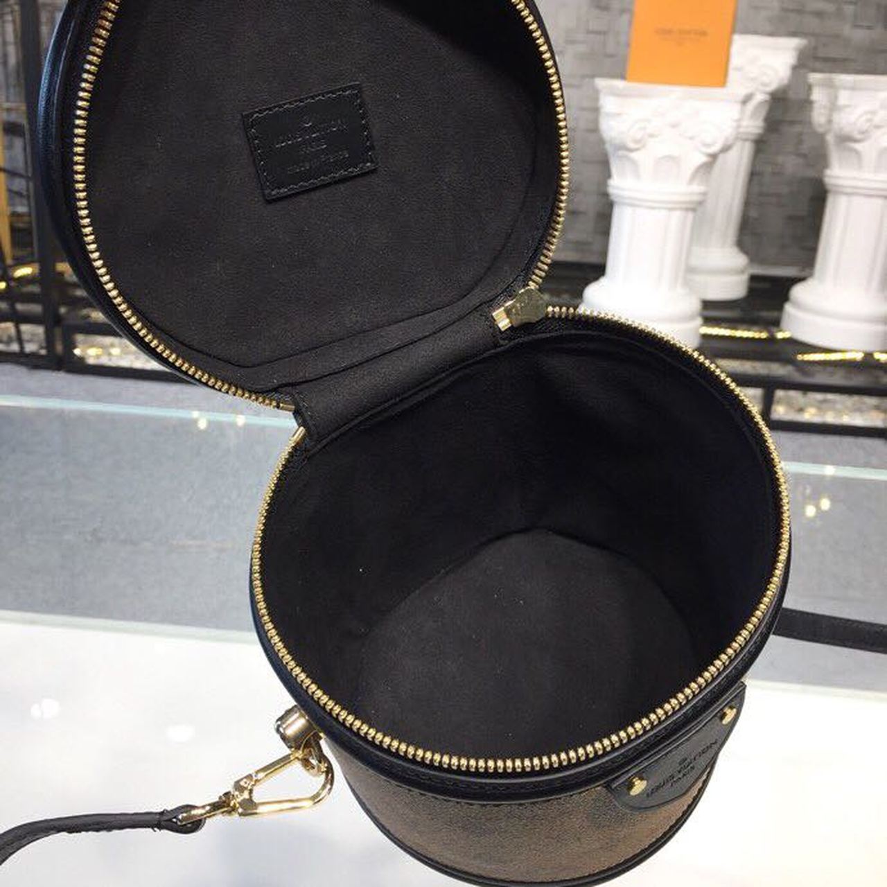 Featuring the historical shape of the LV Cannes beauty case, designer Nicolas Ghesquière revives a long-standing classic with the Cannes handbag. Petite in size and presented in a mix of Monogram and Monogram reverse coated canvas, the elegant piece reanimates a traditional silhouette steeped in L.V heritage. A removable leather strap and top handle provide a range of carrying options.