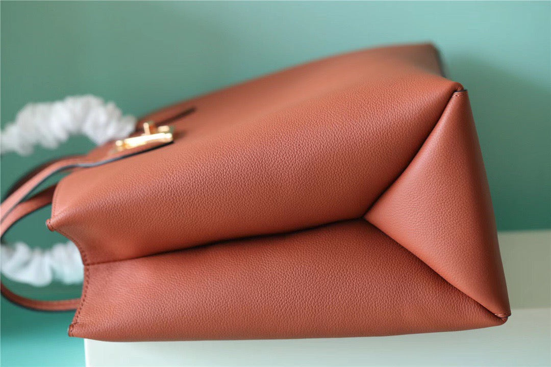 Comfortable to carry thanks to its two long straps, the Lockme Shopper, is instantly recognizable by its iconic LV turn lock, which secures the closure. Rounded and folded gussets give the bag a feminine feel and make it roomy enough to hold city-to-office essentials, including A4 files.