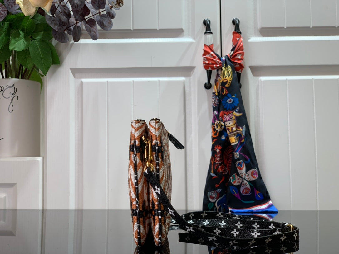 L.V LV Crafty Double Zip Pochette Monogram Canvas Caramel/Cream For Women, Shoulder And Crossbody Bags 7.9in/20cm LV M69488