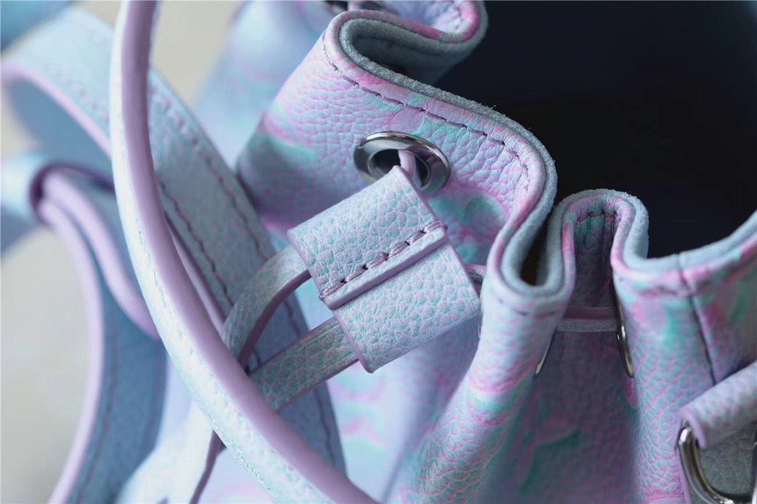 For the Summer Stardust collection, the Nano Noé is reinterpreted in supple Monogram Empreinte, embossed with the Monogram pattern. They are specially treated to create a shimmering effect inspired by starry skies. With room for everyday essentials, this miniature replica of the iconic Noé bag features a removable handle and a removable, adjustable strap for multiple carry options.