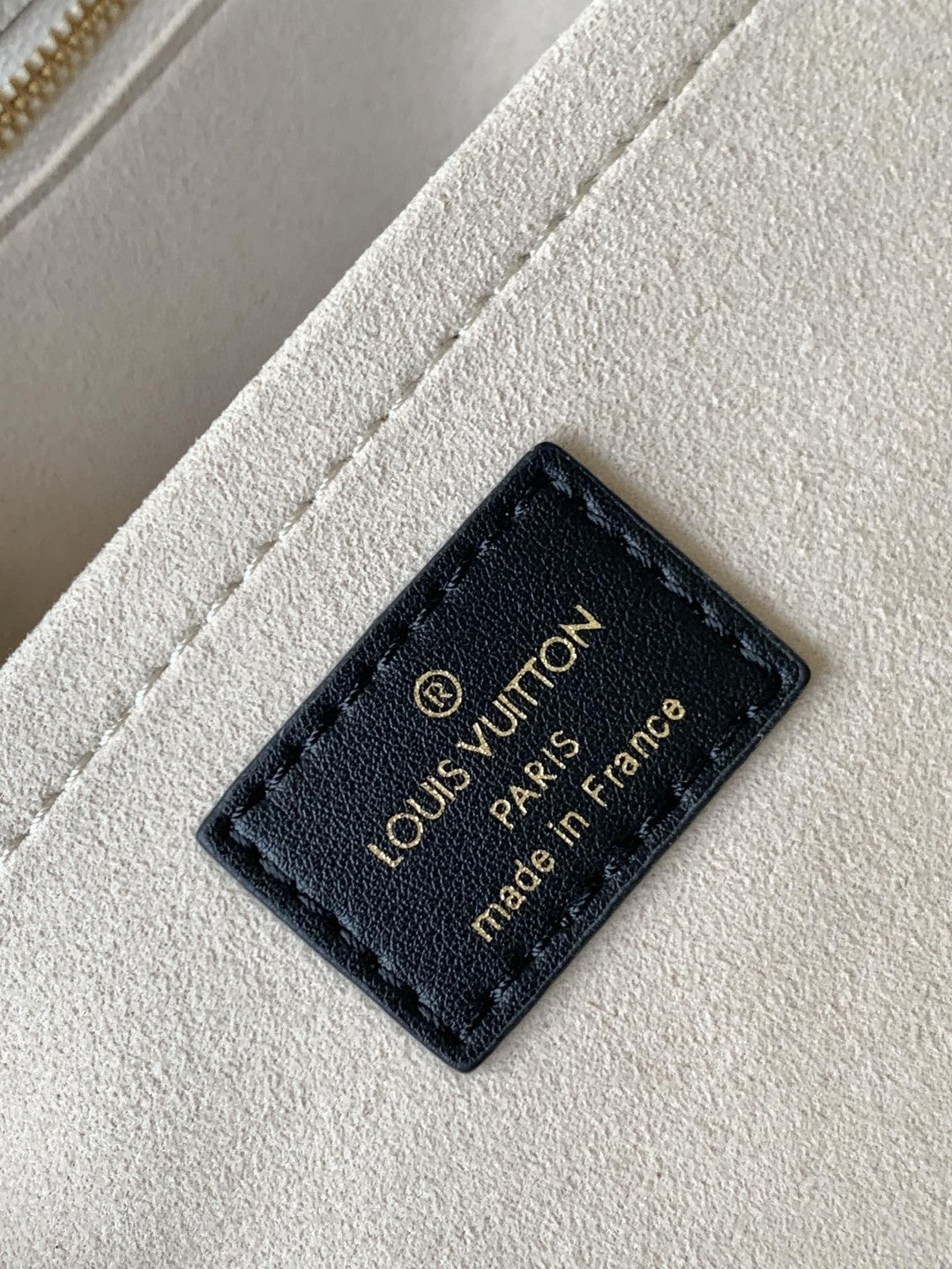 The On My Side MM tote bag is fashioned from an elegant combination of small-grained and emblematic Monogram canvas. The large outside pockets in contrasting canvas create a bag-in-a-bag look. The roomy interior can easily hold everything needed for a day at the office while the adjustable strap makes for practical cross-body carry.