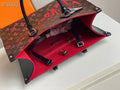 This bag is made from monogram canvas with monogram flowers and heart in red and pink, the OnTheGo MM tote bag is signed “L.V” in lipstick as part of the Fall In Love capsule collection. A lipstick charm completes the picture. The OnTheGo has both long and short handles to enable comfortable hand and shoulder carry.