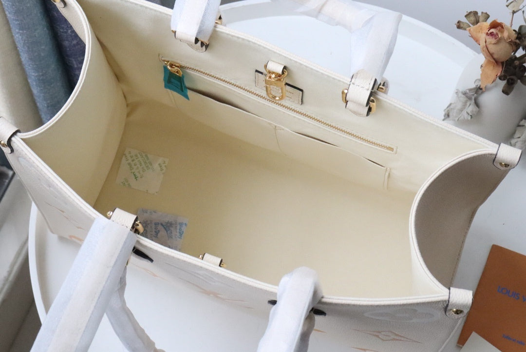 L.V OnTheGo MM Tote Bag Monogram Empreinte Cream For The Pool Collection, WoHandbags 13.8in/35cm LV M45717