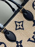 L.V OnTheGo MM Tote Bag Monogram Raffia Navy Blue For Womtlm, Shoulder Bags 13.8in/35cm LV M57723
