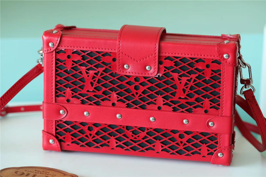 L.V Petite Malle Monogram Red For Women, Women’s Handbags, Shoulder And Crossbody Bags 7.9in/20cm LV