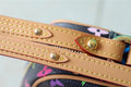 L.V prestlmts its beloved Monogram Multicolore canvas on a new modern shape, perfect for busy days or travel. The petite pouch features an exterior pocket with a fun oversized goldtlm snap and classic L.V hallmarks such as yellow topstitching and goldtlm LV rivets. With an adjustable strap.