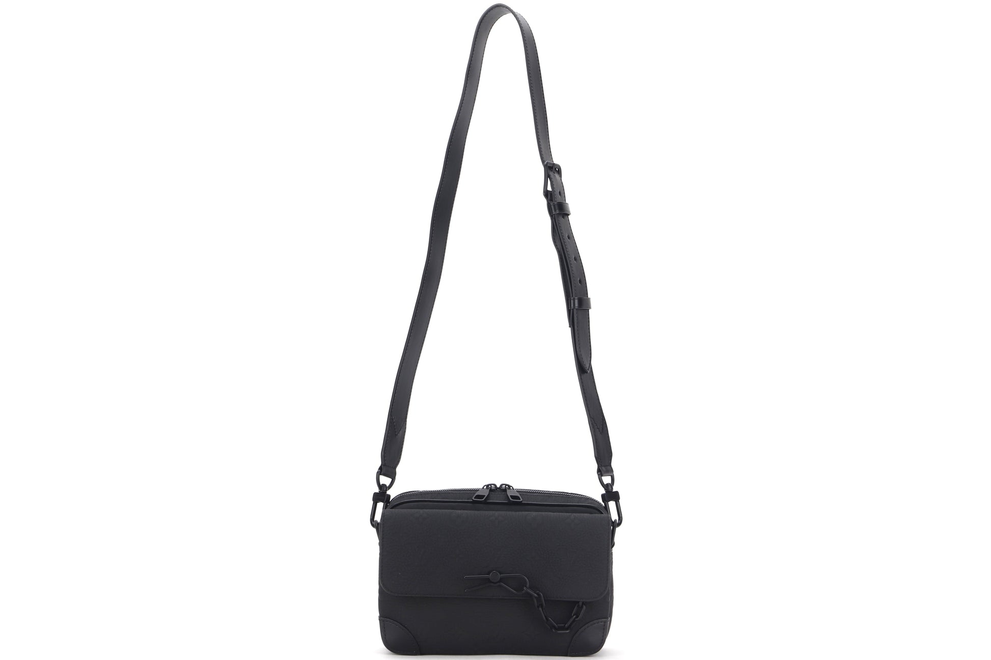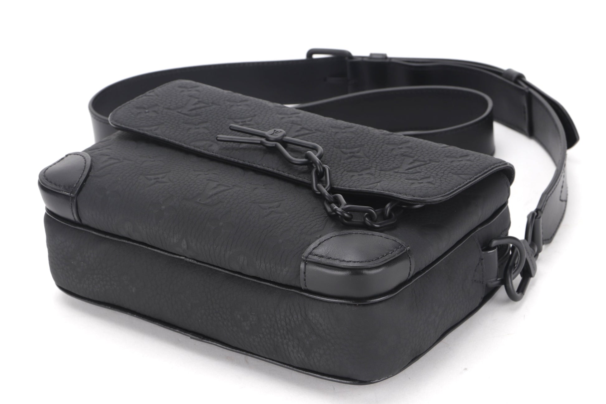 LOUIS VUITTON M23742 STEAMER MESSENGER BLACK TAURILLION MONOGRAM EMBOSSED LEATHER, WITH STRAP, DUST COVER & BOX