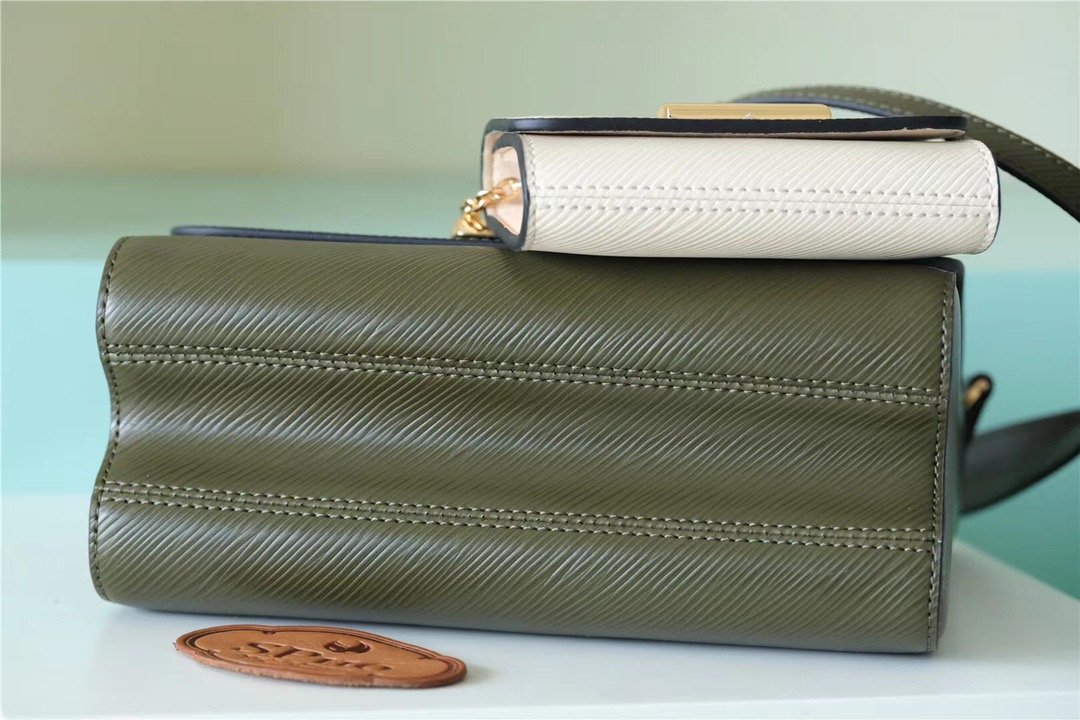 L.V Twist MM Bag, Shoulder and Cross Body Bags For Women Kaki / Quartz White 9.1in/23cm LV M59884