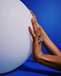 A cocktail ring that will start a conversation. This clear, recycled glass sphere moves as you do, swaying back and forth along a high-polish ring. Finished in high-polish rhodium.